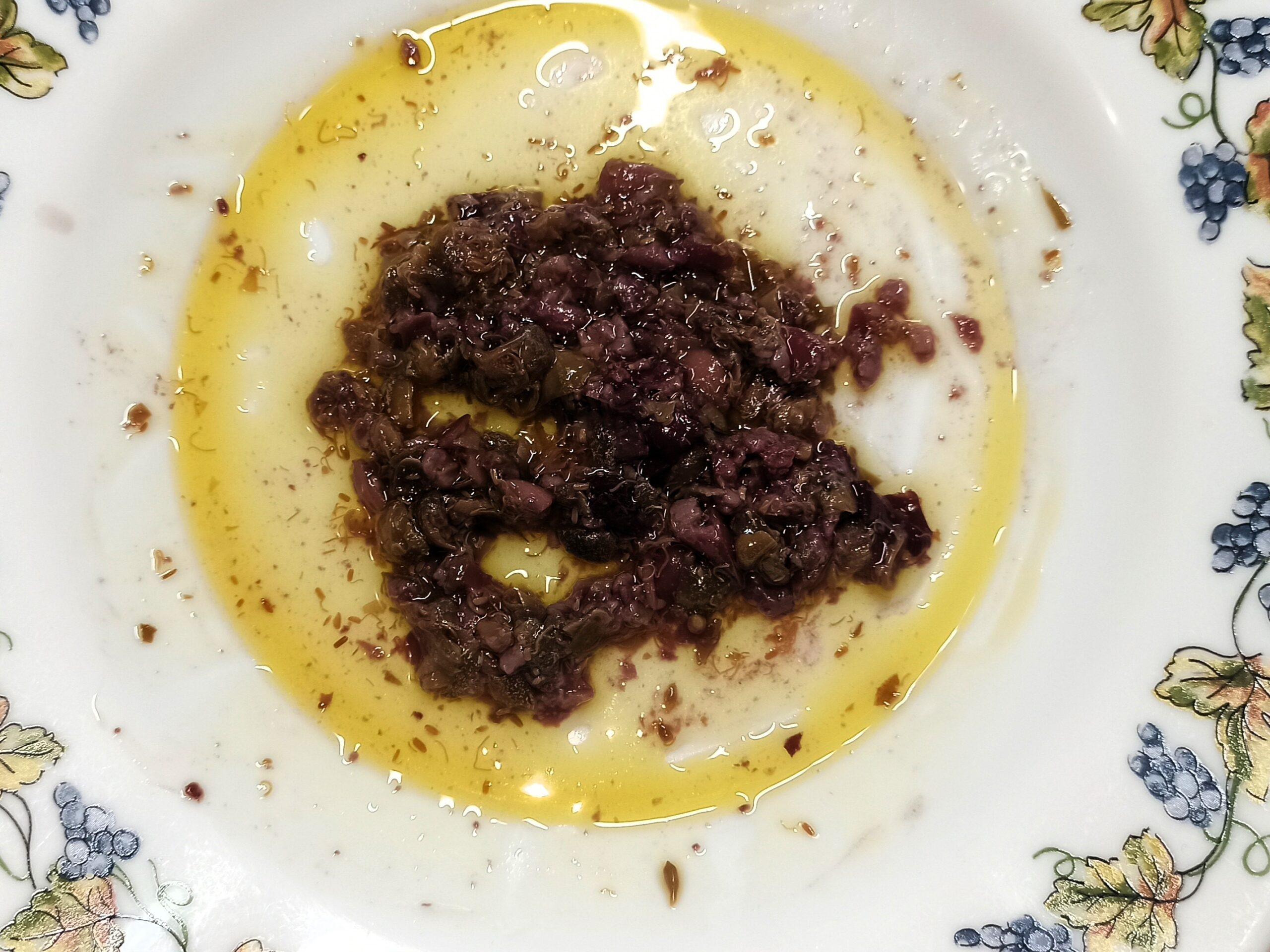 mettete la teglia in friggitrice ad aria, e fate cuocere per quindici minuti. Nel frattempo, dedicatevi a preparare il pinzimonio. In una ciotolina, premete il succo di mezzo limone, aggiungete le olive, capperi ed il prezzemolo, tutto rigorosamente tritato a mano. Mescolate bene, aggiungete olio evo a filo, sempre mescolando, in modo che tutti gli ingredienti saranno per amalgamati fra di loro.