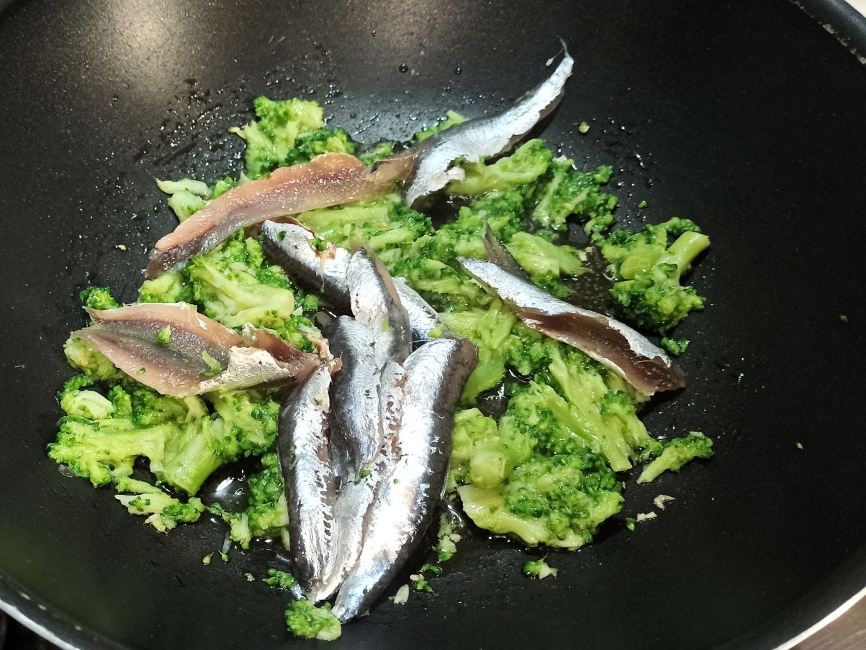 Schiacciatele, e fatele soffriggere per un minuto, aggiungete i filetti di alici,