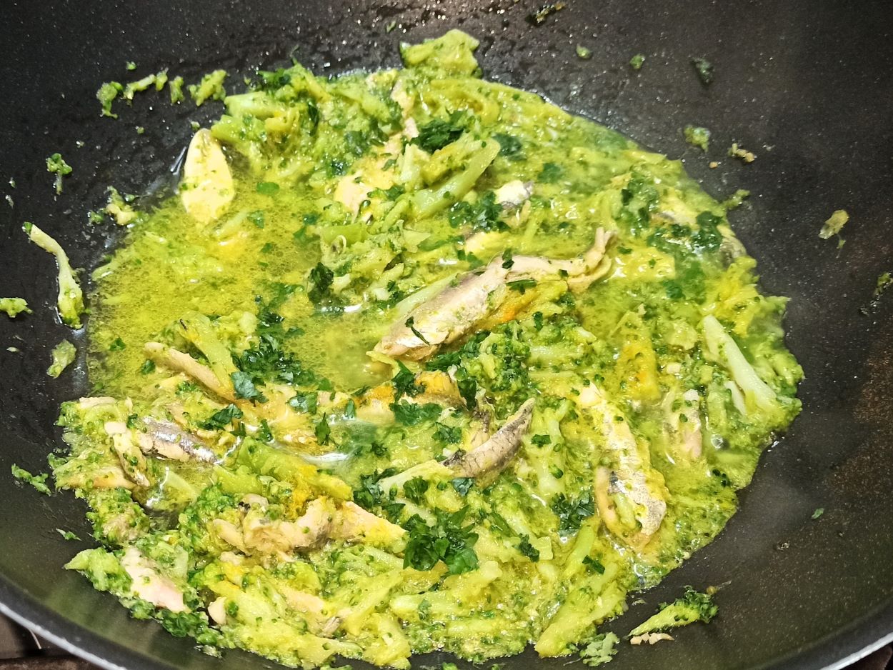 mescolate, aggiungete un poco d’acqua di cottura dei broccoli, regolate di sale e fate cuocere per un paio di minuti.