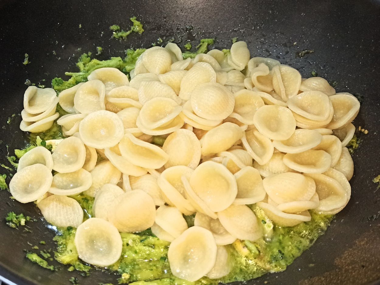 Cuocete le orecchiette, colatele al dente direttamente nella padella,