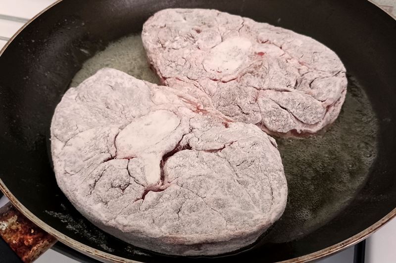 unite gli ossibuchi infarinati e fateli colorire da entrambi i lati a fuoco medio.