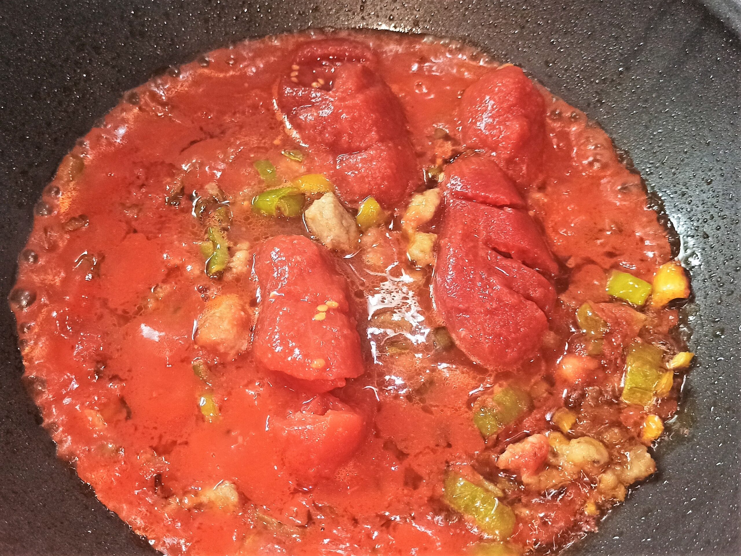 Appena i peperoni saranno cotti unite il pollo, la polpa di pomodori, e fate cuocere per circa quindici minuti a fiamma dolce, regolate di sale.