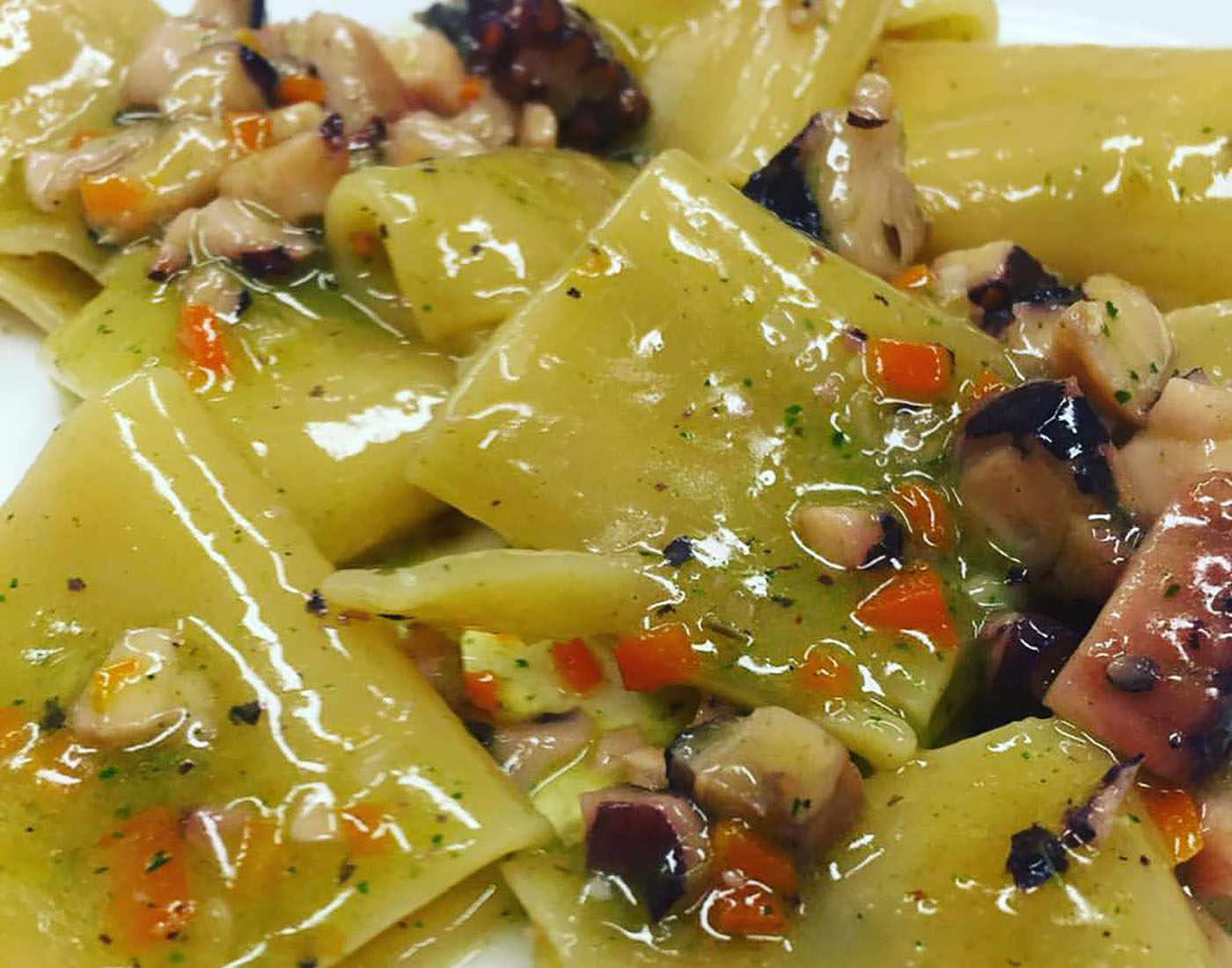 Paccheri de ‘O Munaciello, con polpo, pomodorini e olive