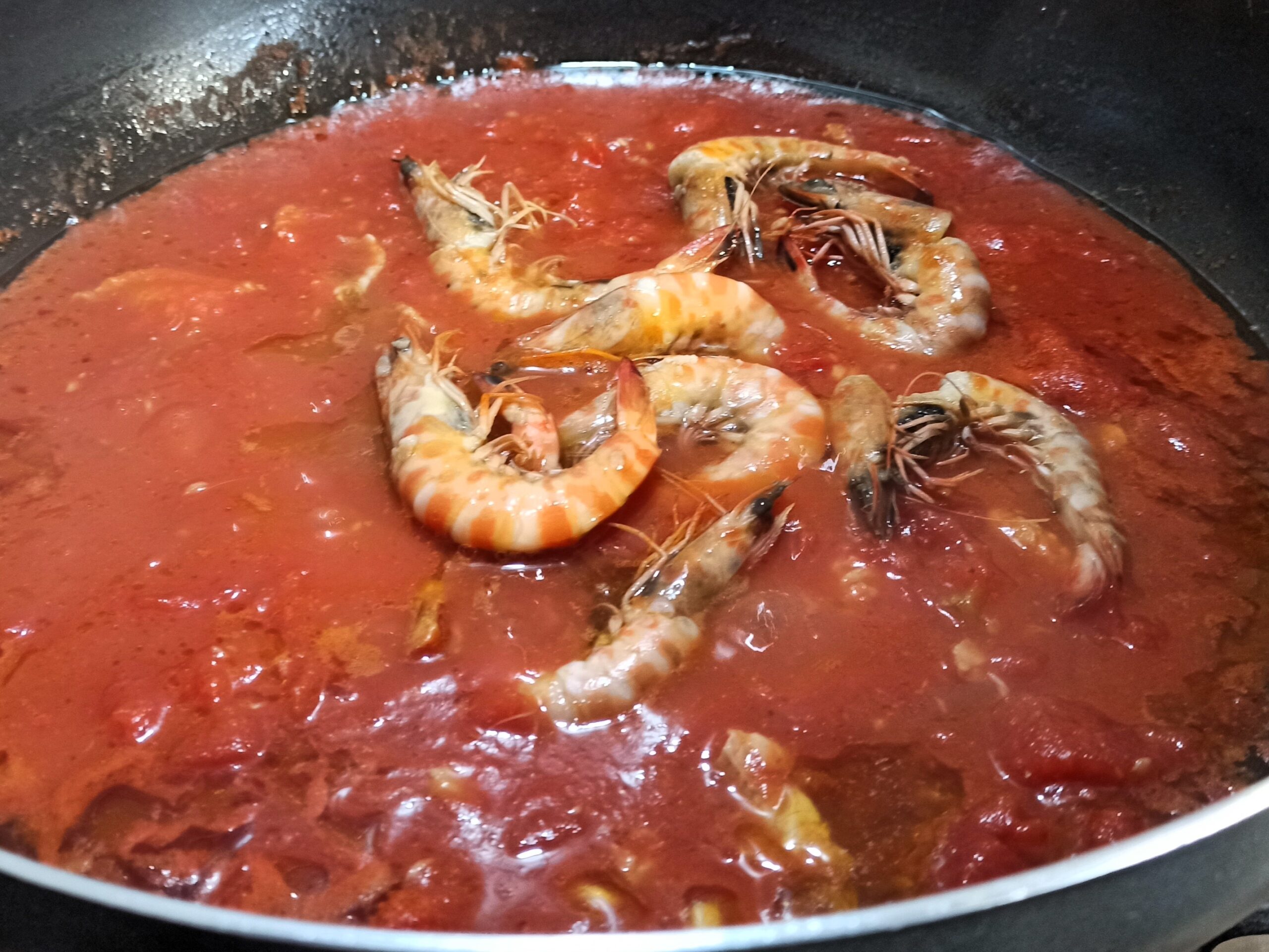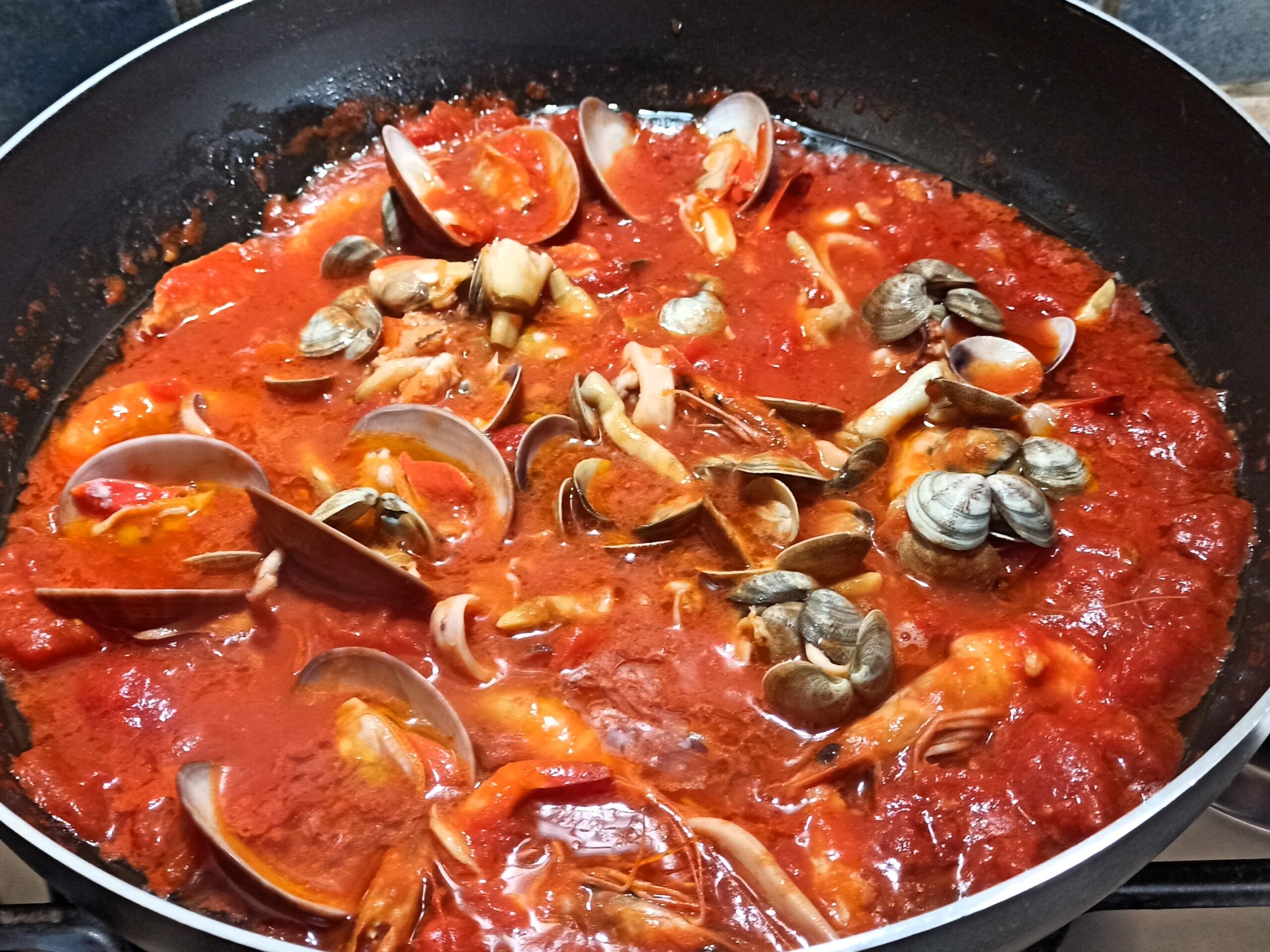 ed infine i frutti di mare, in parte sgusciati, lasciate insaporire il tutto a fiamma spenta.