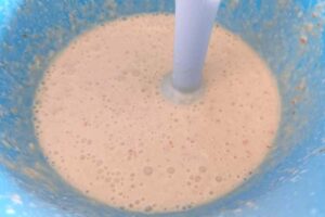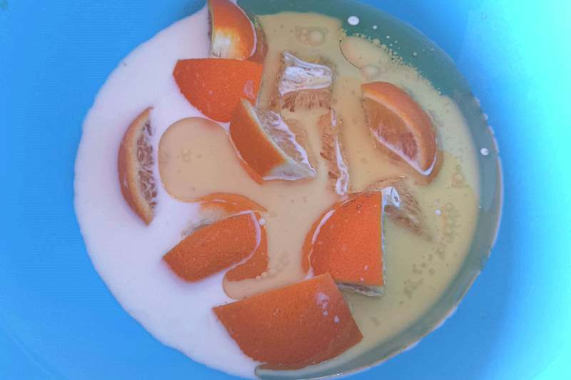 Affettate le arance e riducetele a pezzi, versatele in una ciotola con il latte e l’olio, ( mi raccomando ad usare quello di arachidi, farà venire la torta ancora più soffice rispetto ad altri olii) ed iniziate a frullare con un frullatore ad immersione; quando il composto sarà omogeneo, aggiungete la la farina mischiata con lo zucchero e il lievito, e le uova; continuate a frullare tutto fino ad ottenere un composto cremoso; a piacere aggiungete le gocce di cioccolato.
