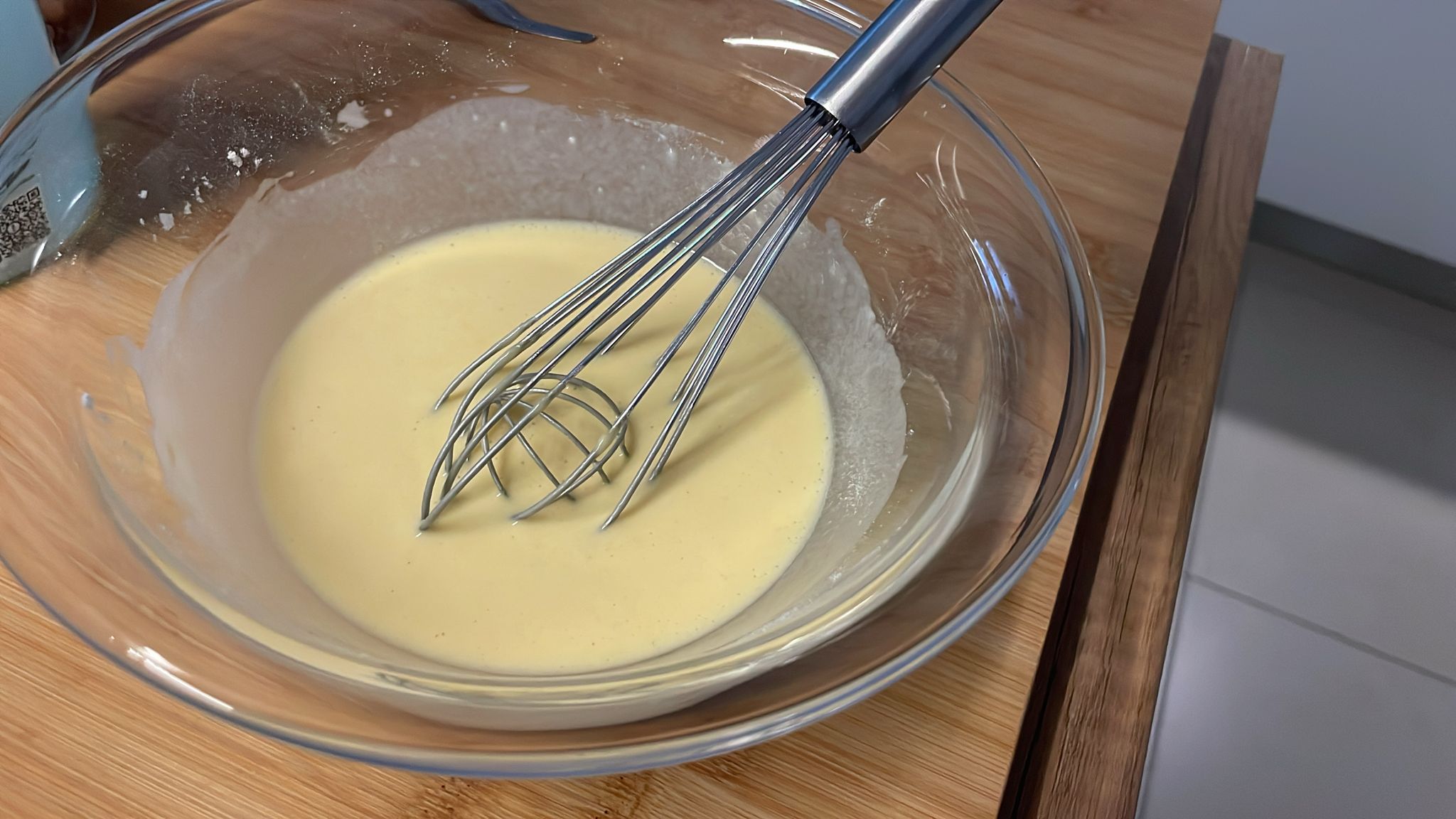 Per la preparazione di questi mini pan cake, ne usciranno circa 10, abbiamo bisogno giusto di un cucchiaio, un bicchiere per le dosi e una ciotola. Quindi prendiamo la nostra ciotola e cominciamo ad inserire uno ad uno gli ingredienti. Mescoliamo con tanta energia per far in modo che non si creino grumi. Armatevi una frusta, meglio se elettrica o anche, un mini pimer. In questa ricetta è importante che il rapporto liquido ( latte) e solido ( farina) sia 1 a 1 ( 100 grammi di latte per 100 di farina) in maniera tale che ne esca una pastella densa. Non crepes.