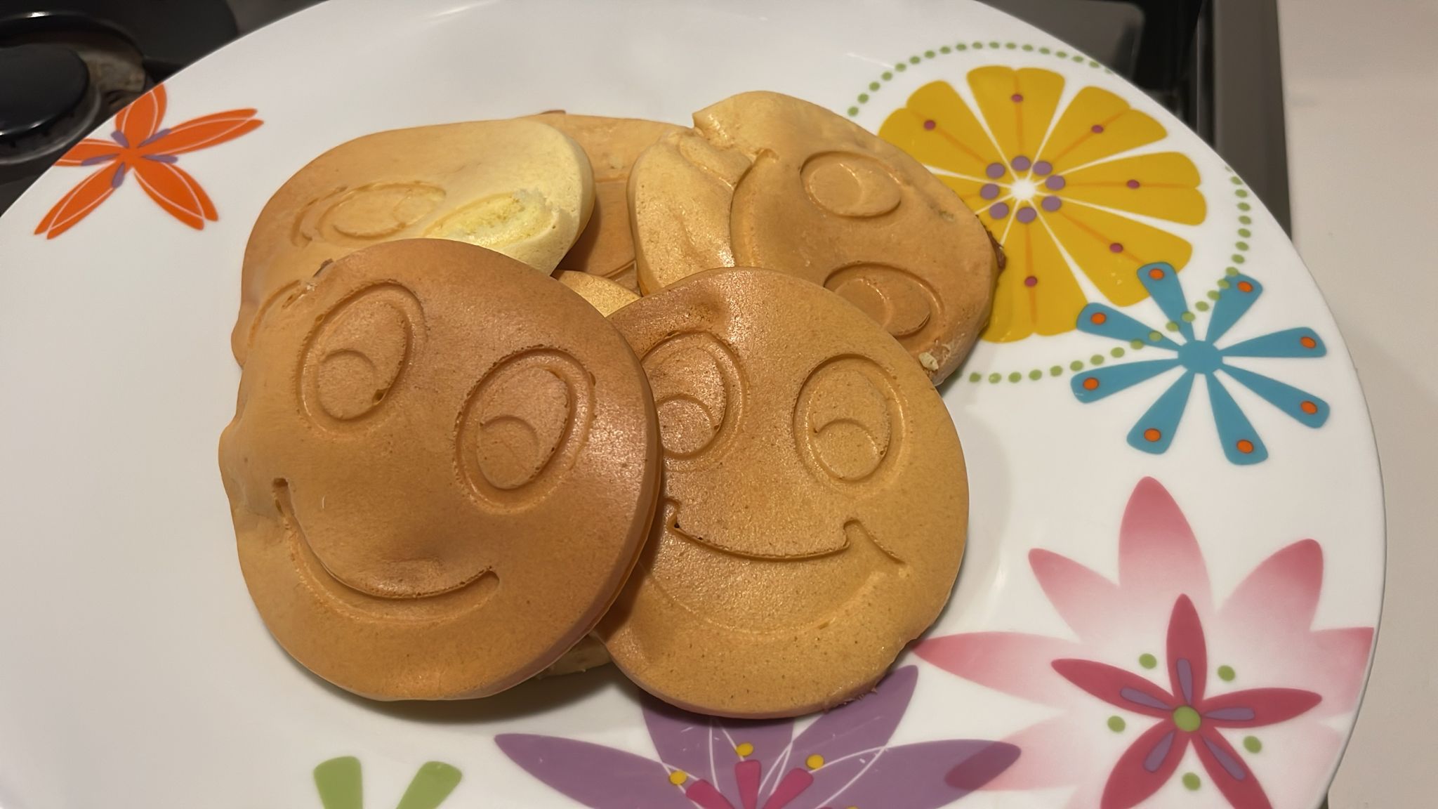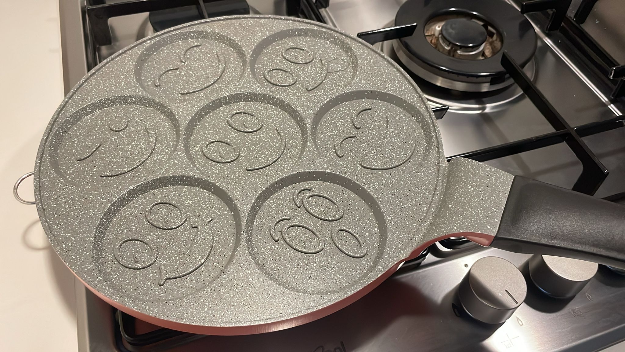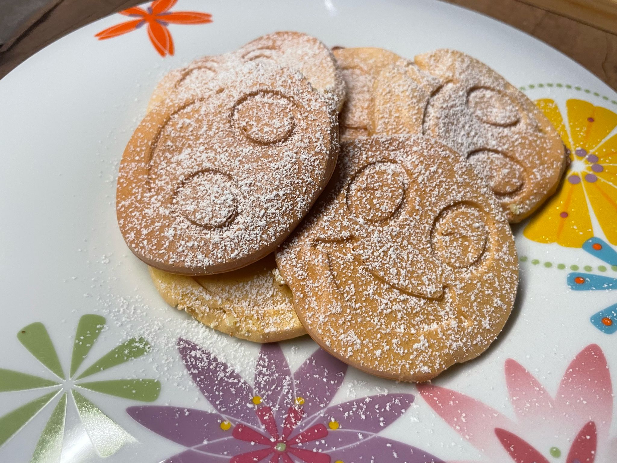 Fatta questa operazione andiamo alla cottura. In questo caso il nostro Stefano aveva a disposizioni una simpatica padella a formine adatta ai pancake. Facciamo scaldare, imburriamo lo stampo e cominciamo la cottura. Se sono piccoli ci vorrà giusto un minuto per lato ( una volta andata a regime la piastra). Ve ne accorgerete dalle bollicine che si formano sull’impasto ancora crudo ( vedi foto) Una volta cotti guarniteli come più vi piacciono: noi li abbiamo guarniti con dello zucchero a velo.