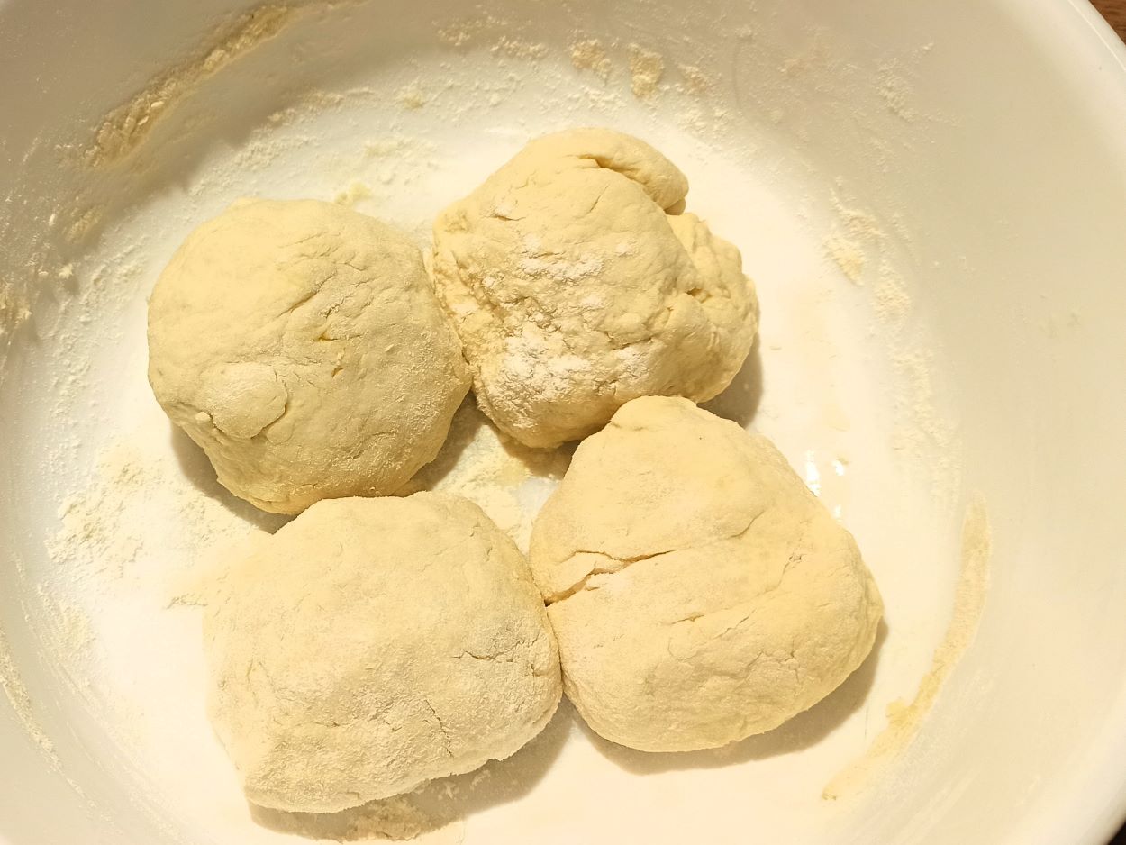 Dividete l’impasto ottenuto, in quattro parti uguali, oppure secondo le vostre esigenze, e lasciate riposare per trenta minuti.