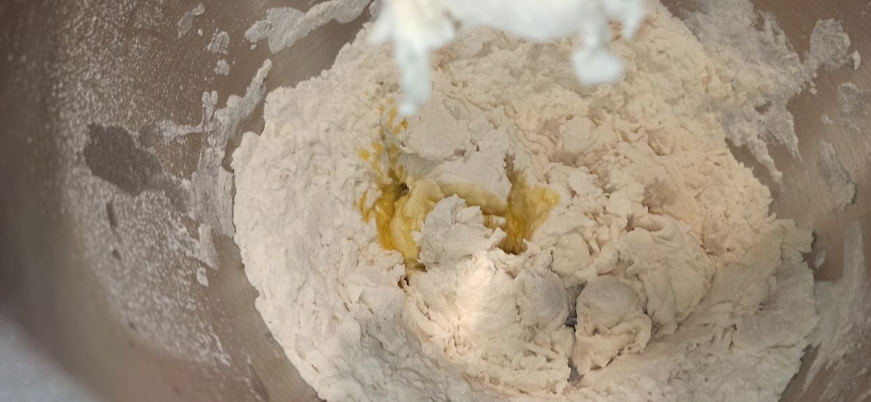 Sciogliete il lievito con poca acqua, ed aggiungetelo alla farina.