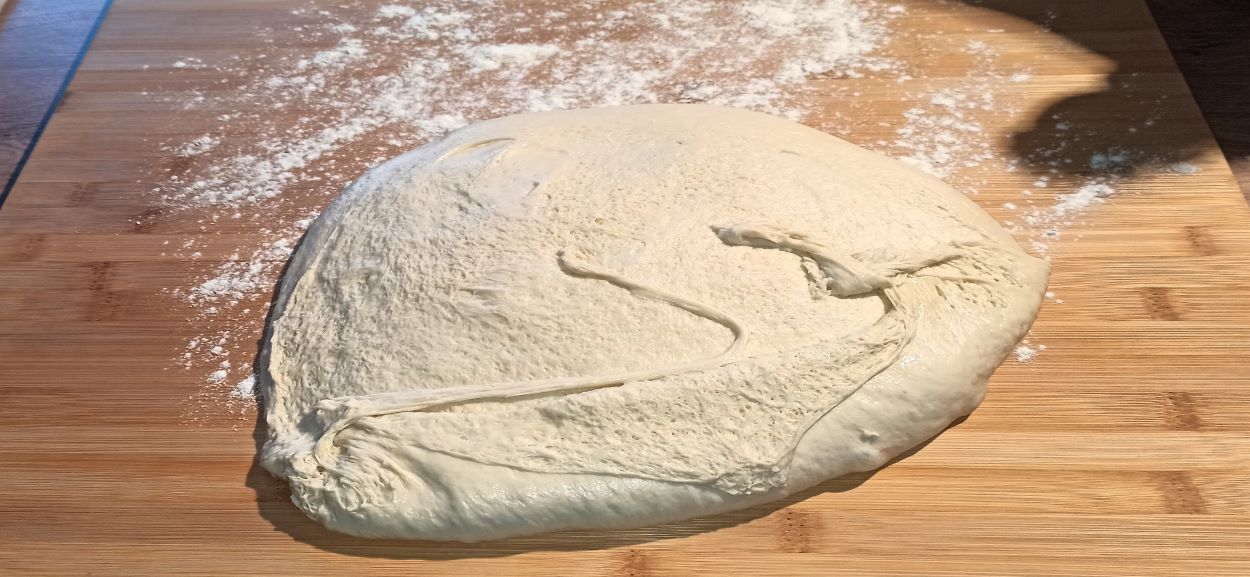 Coprite la ciotola con la pellicola, e fate riposare per sei ore. Riprendete l’impasto ormai bello gonfio,