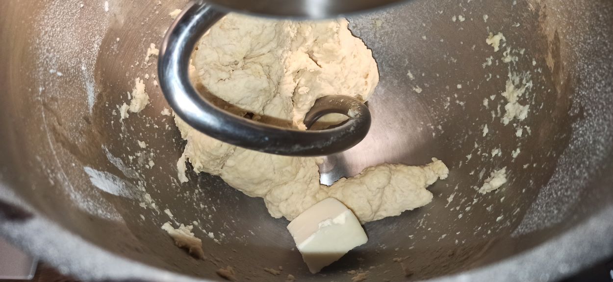 Unite anche il sale, e quando anche il sale sarà stato ben incorporato, aggiungete il burro, un pezzetto alla volta. Mi raccomando fate assorbire il pezzetto, prima di aggiungerne un altro.