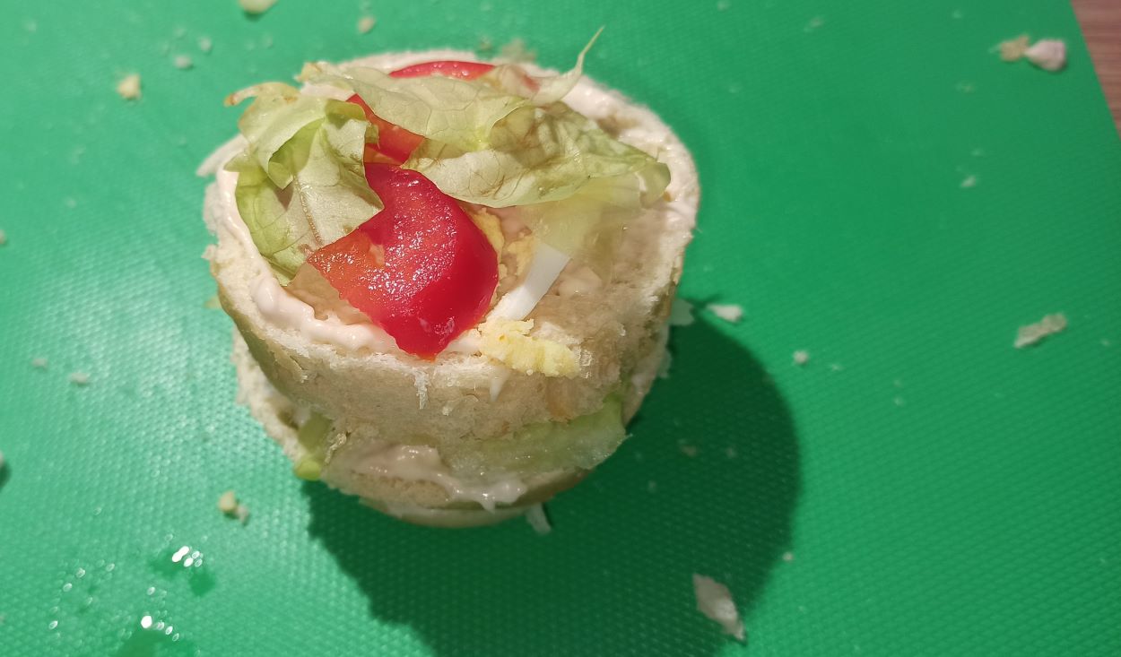 Fateli raffreddare, almeno per tre ore su una gratella, poi posizionateli in un contenitore chiuso, e lasciateli rassodare per tutta la notte. Il giorno dopo, con un coltello ben affilato, tagliate i panettoncini in tre o quattro parti, nel senso orizzontale. Farcite i vari strati alternandoli con gli ingredienti, sovrapponete i vari strati, fermandoli con degli stuzzicadenti.