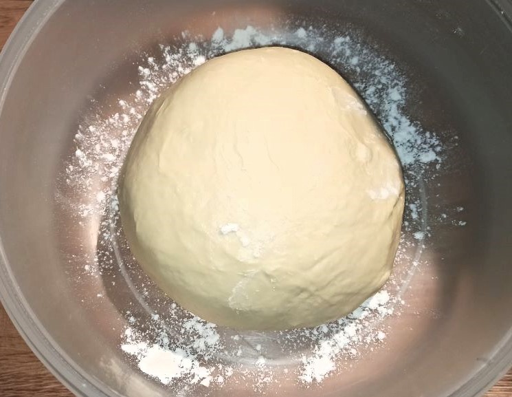 Continuate la lavorazione, fino ad ottenere un impasto liscio ed incordato. Formate una sfera, e mettetelo in una ciotola leggermente infarinata, coprite con pellicola, e lasciate riposare per due ore.