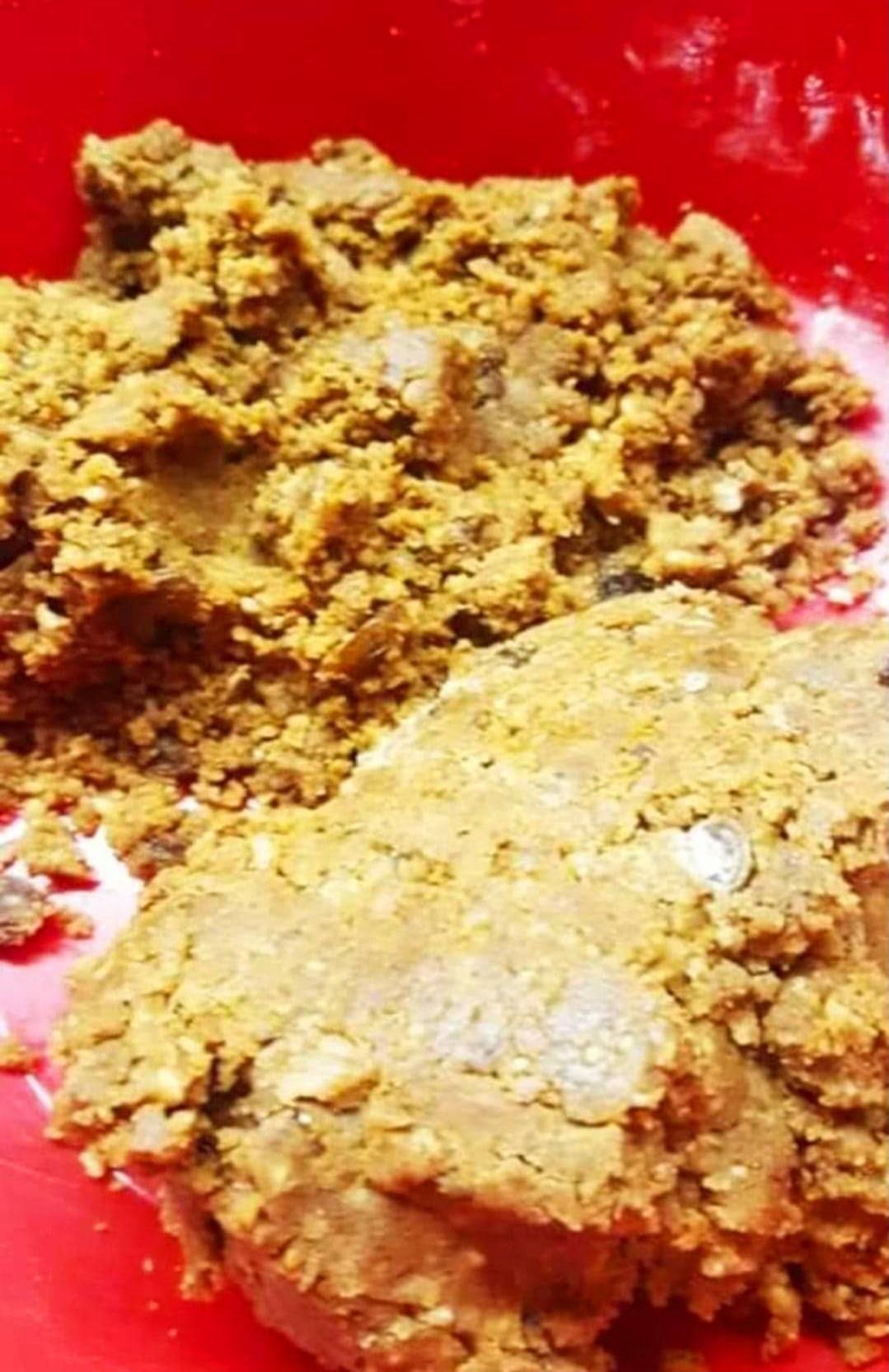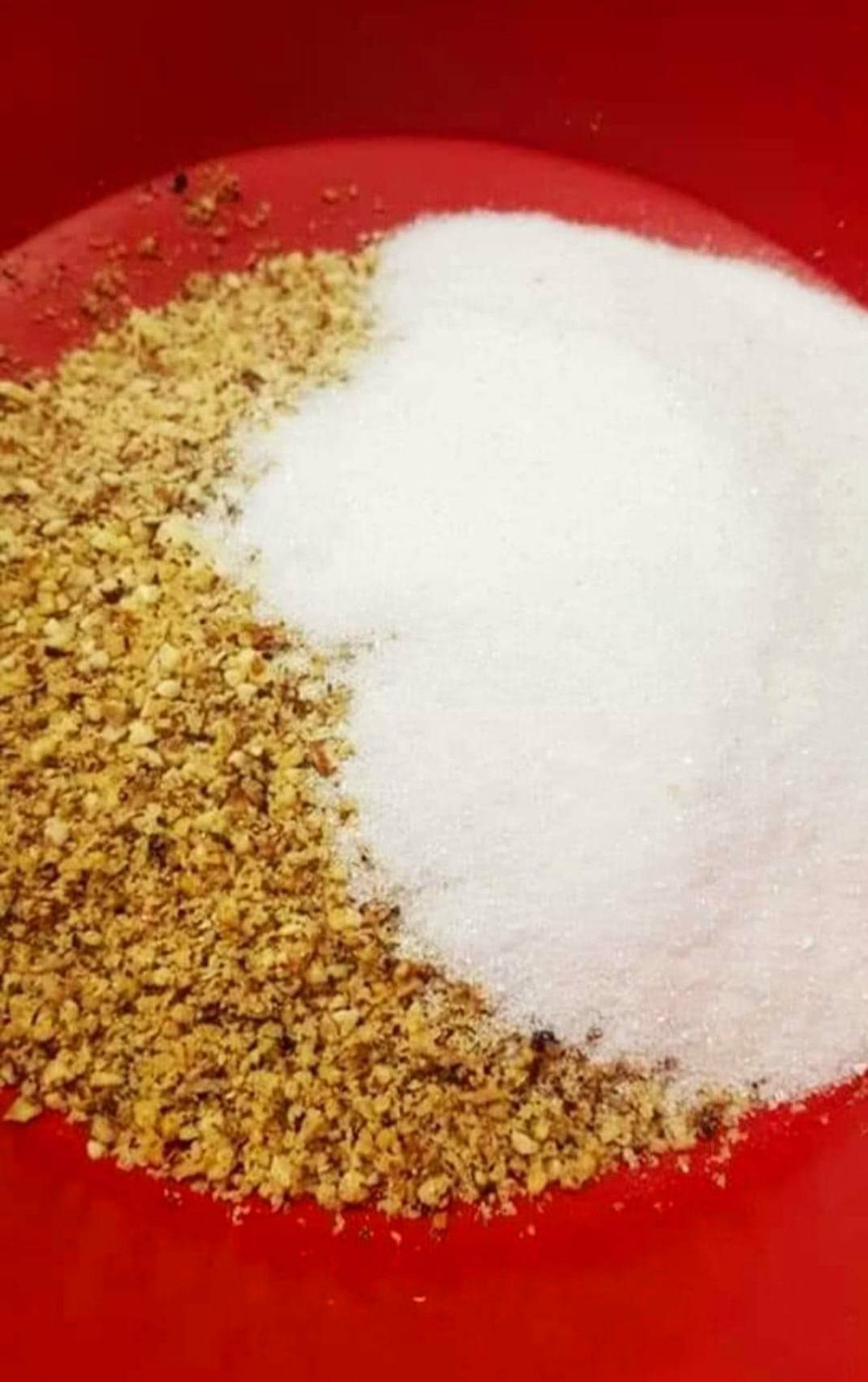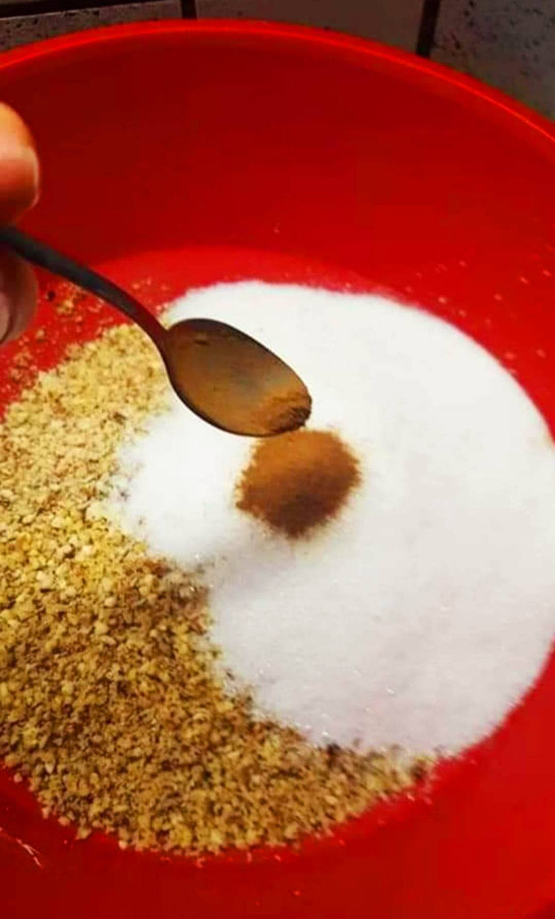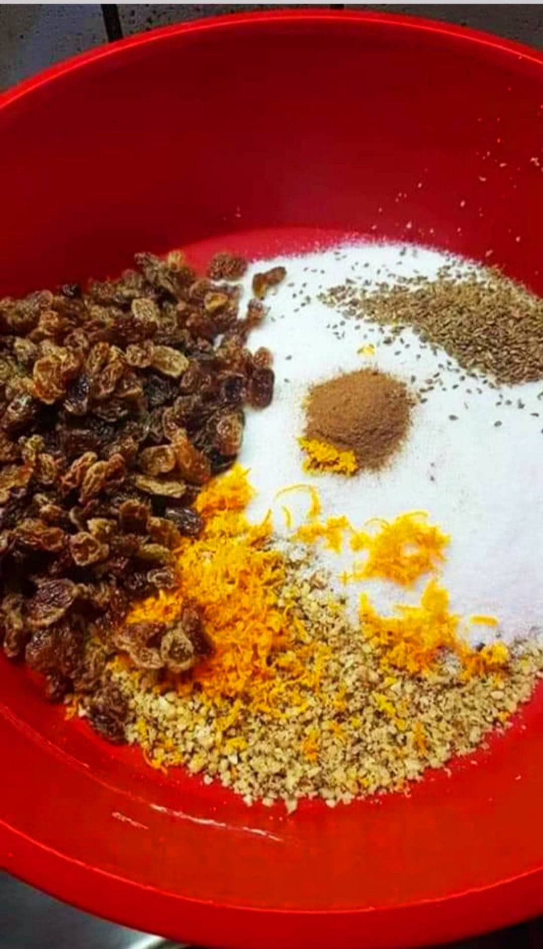 Mettere in un recipiente la frutta secca tritata non troppo finemente, lo zucchero, l‘uvetta, la cannella,v l’ arance grattugiate e l’ anice stellato. Mescolare il tutto Aggiungere il liquore, lo strutto, il lievito, la farina e un po’ per volta la sapa(no la marmellata). lavorare il tutto formando un panetto.