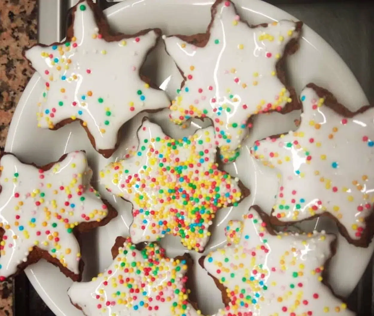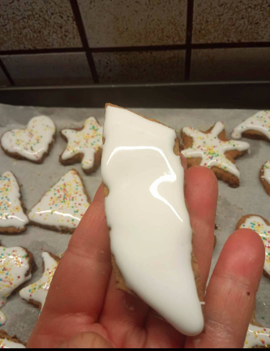 Da subito noterete il nascere di una cappa lucidissima continuare fino al termine dello sciroppo. Con un cucchiaino metterla sopra i biscotti per poi decorarli a piacere. Lasciare qualche ora a riposo il tutto per permettere alla cappa di asciugare.Portare il recipiente dello sciroppo in una certa altezza è importantissimo perché aiuta lo sciroppo lungo la caduta a raffreddarsi e non cuocere l’ albume