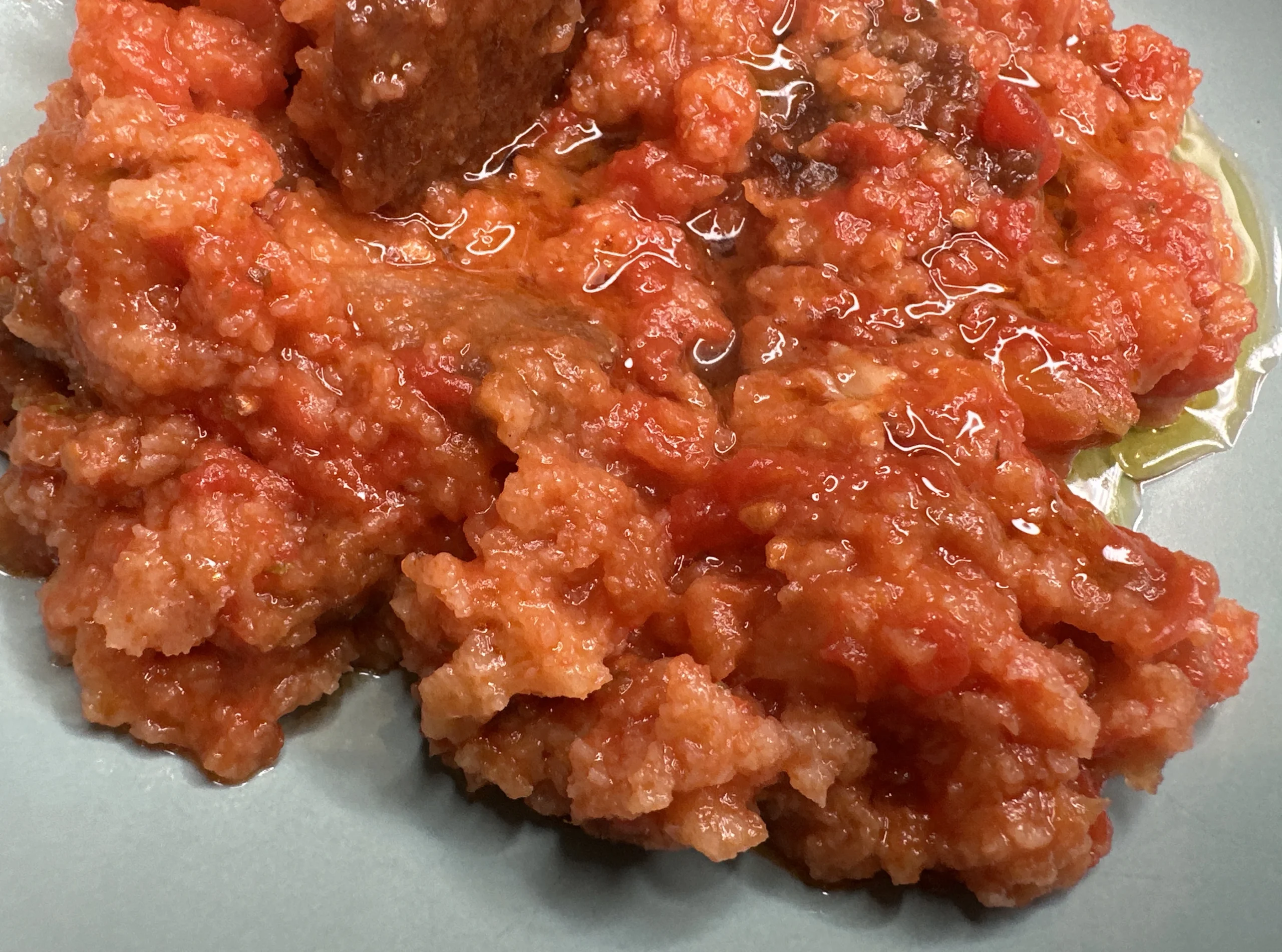 A questo si univano ingredienti poveri ma preziosi: pomodori maturi, aglio, olio extravergine d’oliva e basilico fresco. Il tutto veniva cotto lentamente e trasformato in una pappa densa, profumata e nutriente.