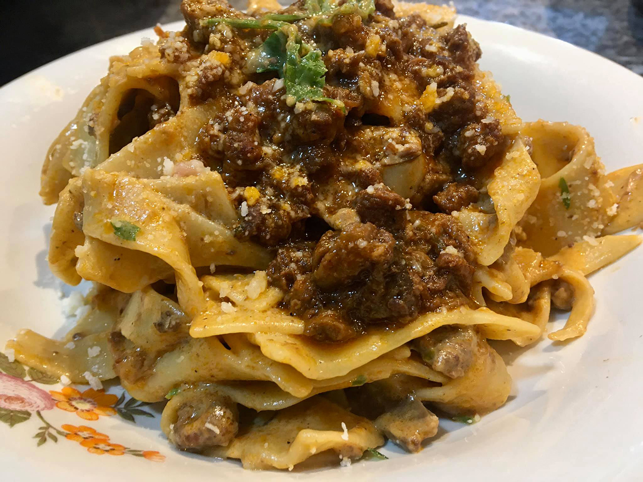 Le pappardelle al ragù di cinghiale sono un piatto della tradizione della maremma toscana. Si differenziano dal più conosciuto ragù alla bolognese proprio per il sapore della carne. Il cinghiale infatti ha un sapore più intenso e selvatico e conferisce a questa portata i sapori di un tempo. Una carne pregiata che diventerà tenera e morbida dopo lunghe ore di cottura. Ma a rendere speciale questo piatto è anche il formato di pasta scelto: sembra impossibile pensare a questo sugo senza le sue pappardelle, che a ogni forchettata ne raccolgono tutto il sapore e la bontà.