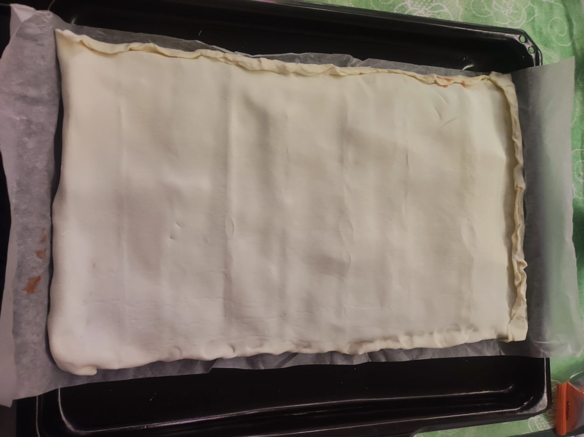 Infine coprite il tutto con l’altro rotolo di pasta sfoglia.