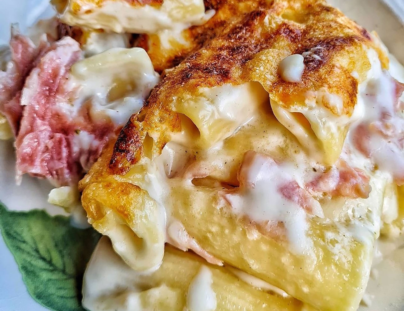 Pasticcio di pasta con ragù di porchetta e formaggio