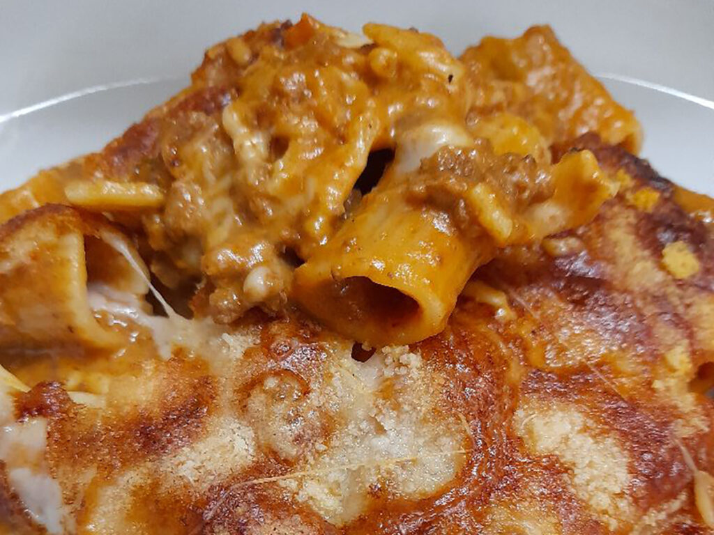 - Strato finale: completare con abbondante sugo, parmigiano e pangrattato per ottenere una crosta dorata e croccante.