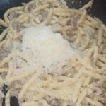 I fusilli con ragù di carciofi e carne tritata, sono un primo piatto molto saporito, adatto per un pranzo domenicale. Il condimento è preparato con pancetta e carne tritata, arricchito con carciofi, e il tutto amalgamato con la panna e profumato con una grattugiata di scorza di limone. Sono una valida alternativa al classico ragù di carne, veloce da preparare, l’unica operazione un pò più dolorosa è pulire i carciofi, perché vi consiglio di usare quelli freschi. La ricetta è presa di ispirazione da quella dello chef stellato Bruno Barbieri