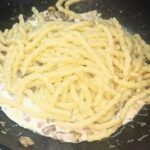 Cuocete al dente i fusilli, colateli direttamente nella padella, amalgamate il tutto.