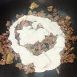 Aumentate la fiamma al massimo e sfumate con il vino bianco. Appena l’alcol sarà evaporato, aggiungete la panna, mescolate bene.