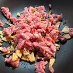 fate rosolare per un minuto. Aggiungete la carne macinata, fate rosolare in maniera uniforme.