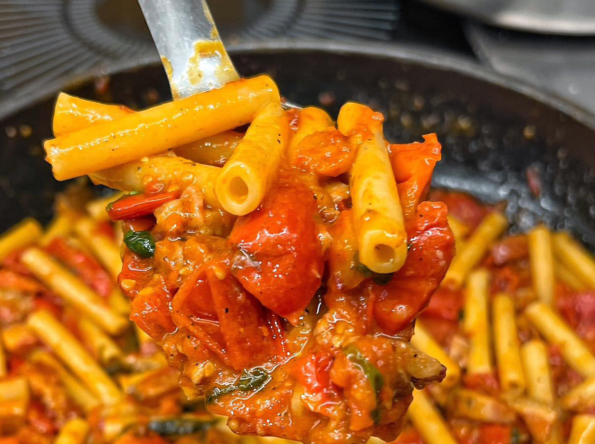 La pasta alla Bisanzio è una classica ricetta salva cena. Si tratta di uno di quei piatti da cucinare quando ti ritrovi degli ospiti a casa e neanche lo sapevi. Sarà capitato a tutti almeno una volta. Magari avevate pensato di arrangiarvi con gli avanzi del giorno prima, o con un panino, e sul fuoco non avete nessuna pentola. Non vi preoccupate, abbiamo la ricetta che fa per voi. Ci vorranno soltanto 10 minuti, il tempo di cottura della pasta, ma farete ugualmente un figurone. Il formato di pasta che vi consigliamo per questa ricetta sono le mezze penne o gli ziti, o comunque la pasta corta.