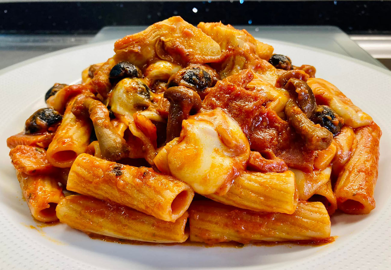 La pasta alla capricciosa è un’idea creativa e deliziosa che prende ispirazione dalla famosa pizza capricciosa, unendo i suoi ingredienti classici in un primo piatto semplice e saporito. Perfetta per variare il menù e sorprendere gli ospiti, questa ricetta offre un mix irresistibile di carciofini, prosciutto cotto, funghi e olive nere, accompagnati da una salsa di pomodoro arricchita con basilico e origano. Il tocco finale della mozzarella filante completa il piatto, rendendolo gustoso e invitante. Ottima da servire appena fatta, è deliziosa anche a temperatura ambiente, ideale per ogni stagione.