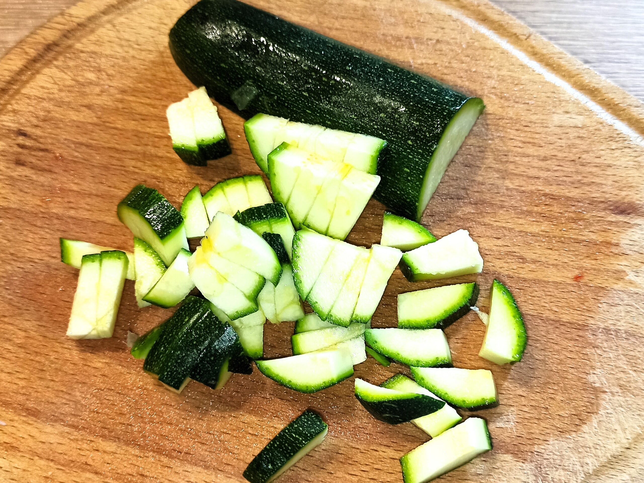 Per preparare le pennette alla Garibaldina, iniziate a lavare ed asciugare le verdure, tagliatele a pezzetti.
