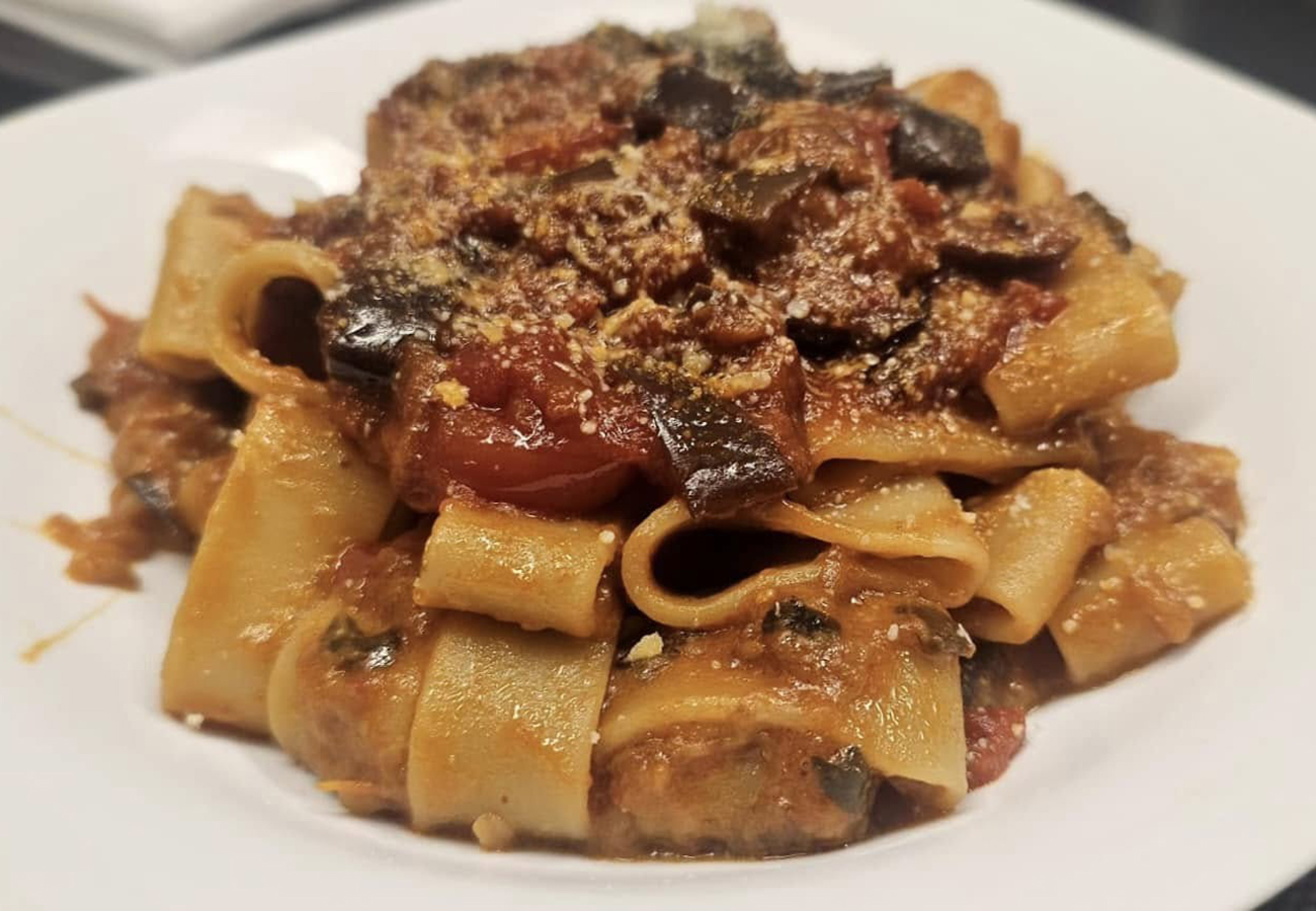 Mezzi Paccheri con Melanzane a Funghetto. Un piatto gustoso e profumato, che combina la semplicità della cucina mediterranea con la ricchezza di sapori delle melanzane a funghetto. Perfetto per un pranzo conviviale o una cena dal sapore autentico.
