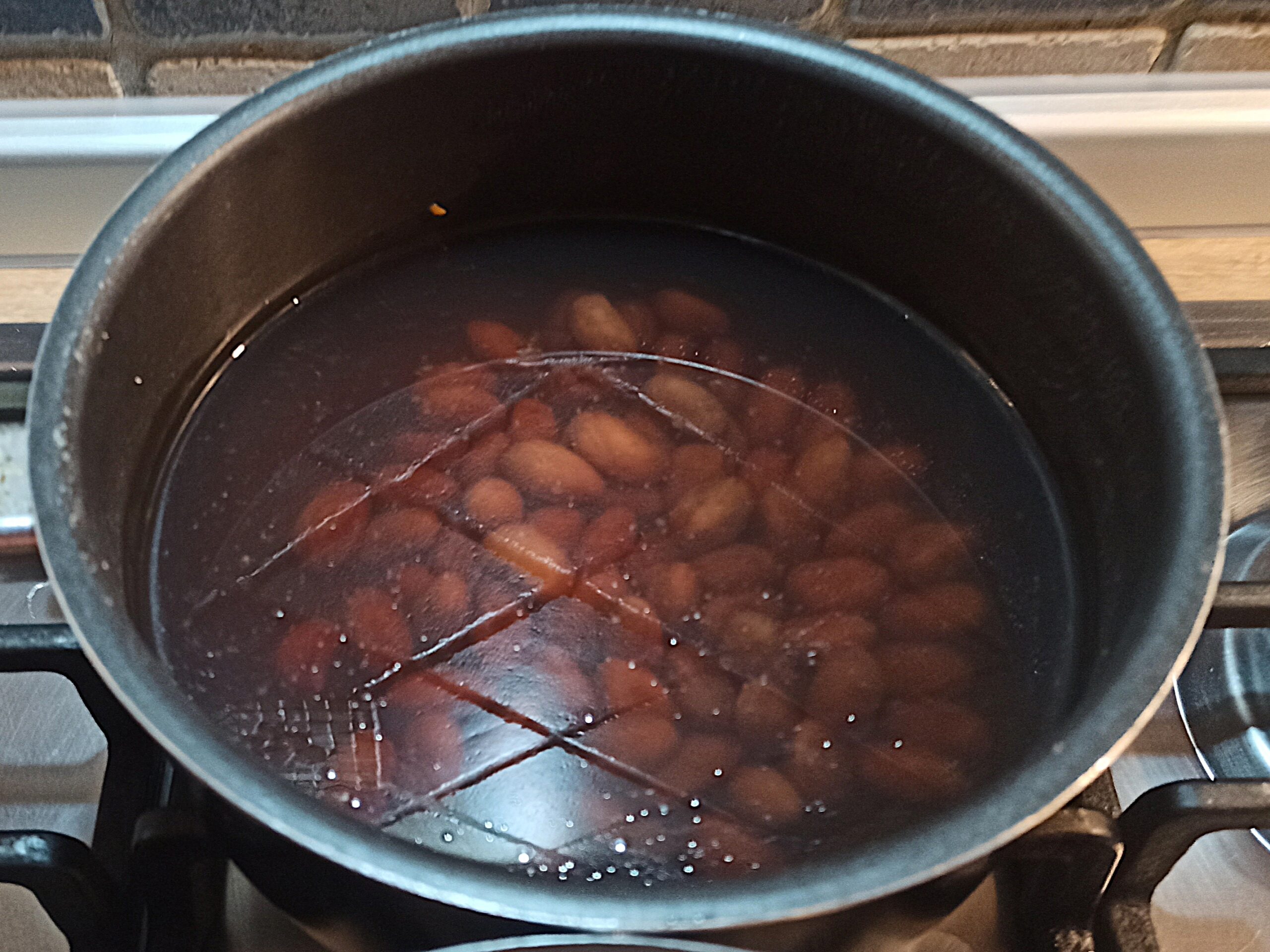 Per preparare la pasta con borlotti alla contadina, iniziate a pulire i fagioli borlotti.