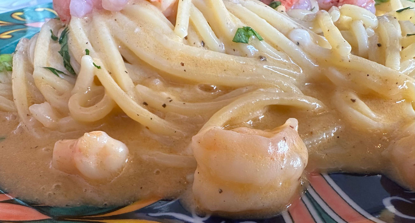 La pasta cacio pepe e gamberi rende gourmet uno dei grandi classici della tradizione culinaria romana. Sono molti gli esperimenti che si fanno in cucina, ma uno dei più riusciti è sicuramente quello del cacio e del pepe insieme a elementi di pesce crudo. L’abbiamo provata prima con i ricci di mare, poi con le cozze, e in entrambi i casi siamo stati soddisfatti. Oggi è il turno dei gamberi, rigorosamente crudi, marinati con lime e pepe rosa, che completeranno questo primo in maniera eccellente. Se non avete il lime non preoccupatevi, potete sostituirlo con del semplice limone.