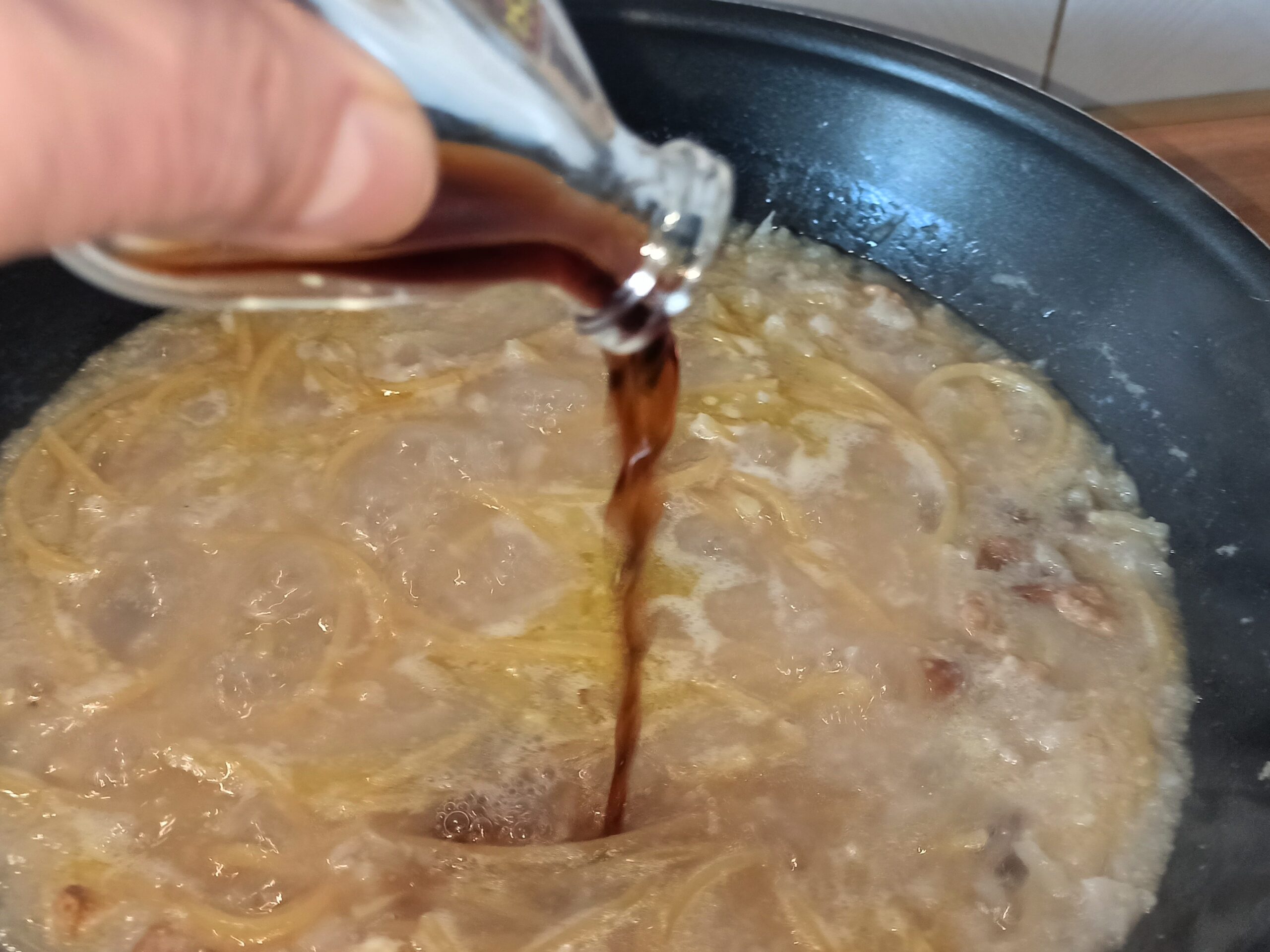 A cottura ultimata, spegnete la fiamma, aggiungete la colatura di alici,