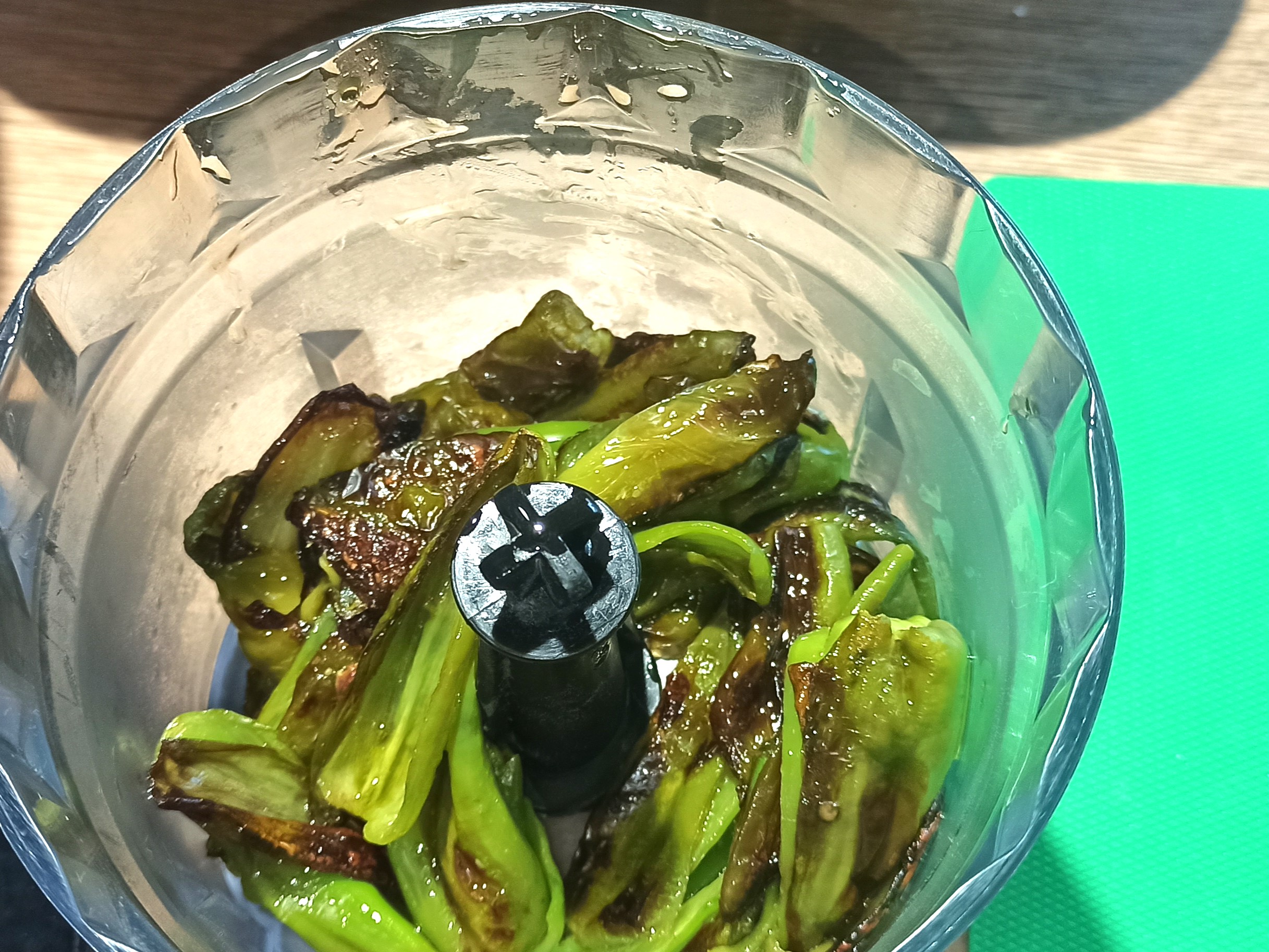 Per preparare la pasta con crema di friggitelli e carne macinata, iniziate a lavare ed asciugare i friggitelli.