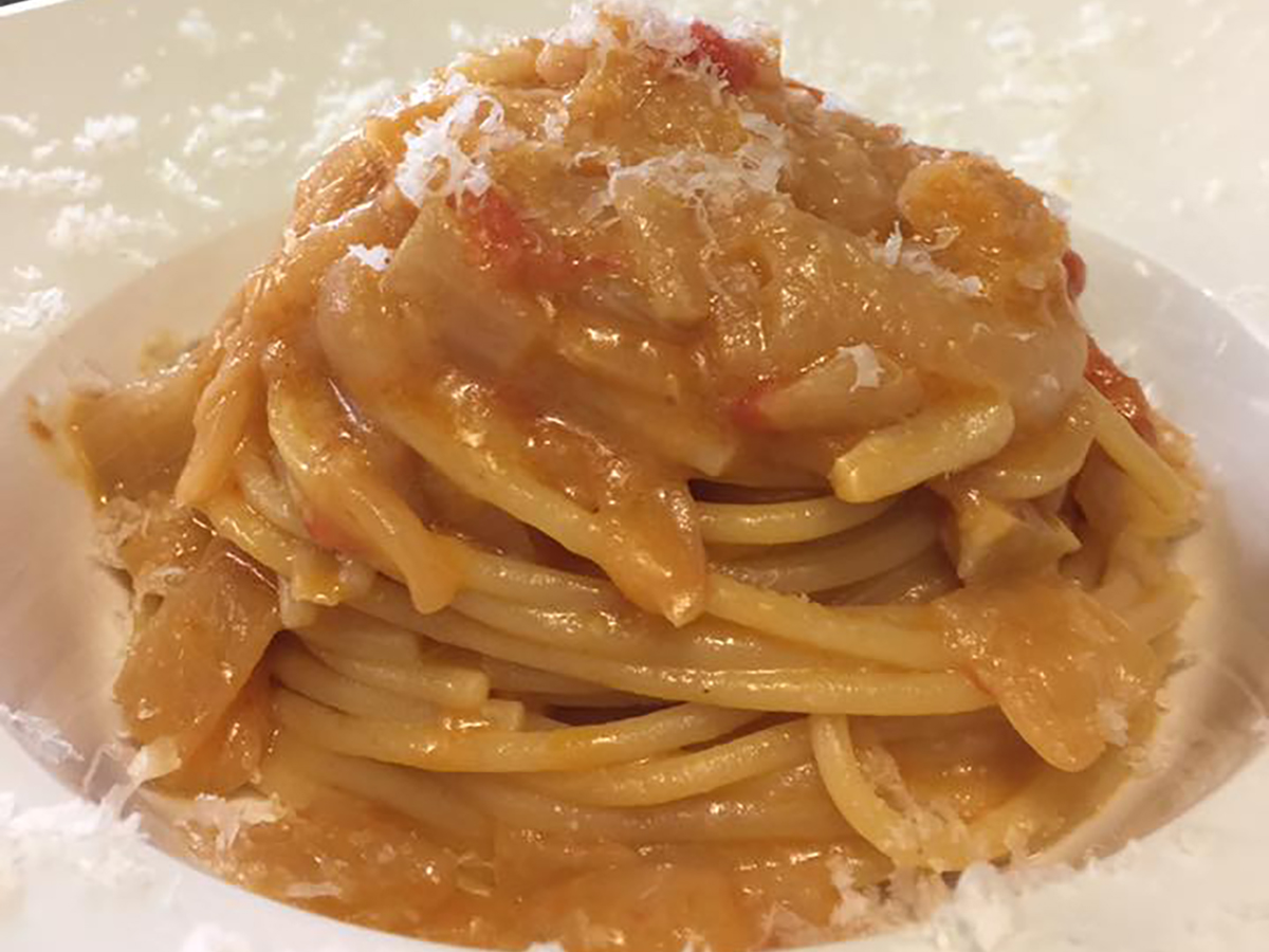 Trascorso il tempo aggiungete anche le cipolle, mescolate e continuate la cottura per altri 20 minuti. Il risultato dovrà avere una consistenza quasi cremosa. Intanto lessate i bucatini in abbondante acqua bollente e salata. Scolateli 2 minuti prima del tempo previsto dalla confezione e trasferiteli nel tegame con il condimento. Se necessario, aggiungere un po’ della loro acqua di cottura. Mescolate bene e servite. La vostra pasta con friggione bolognese è pronta. Buon appetito.
