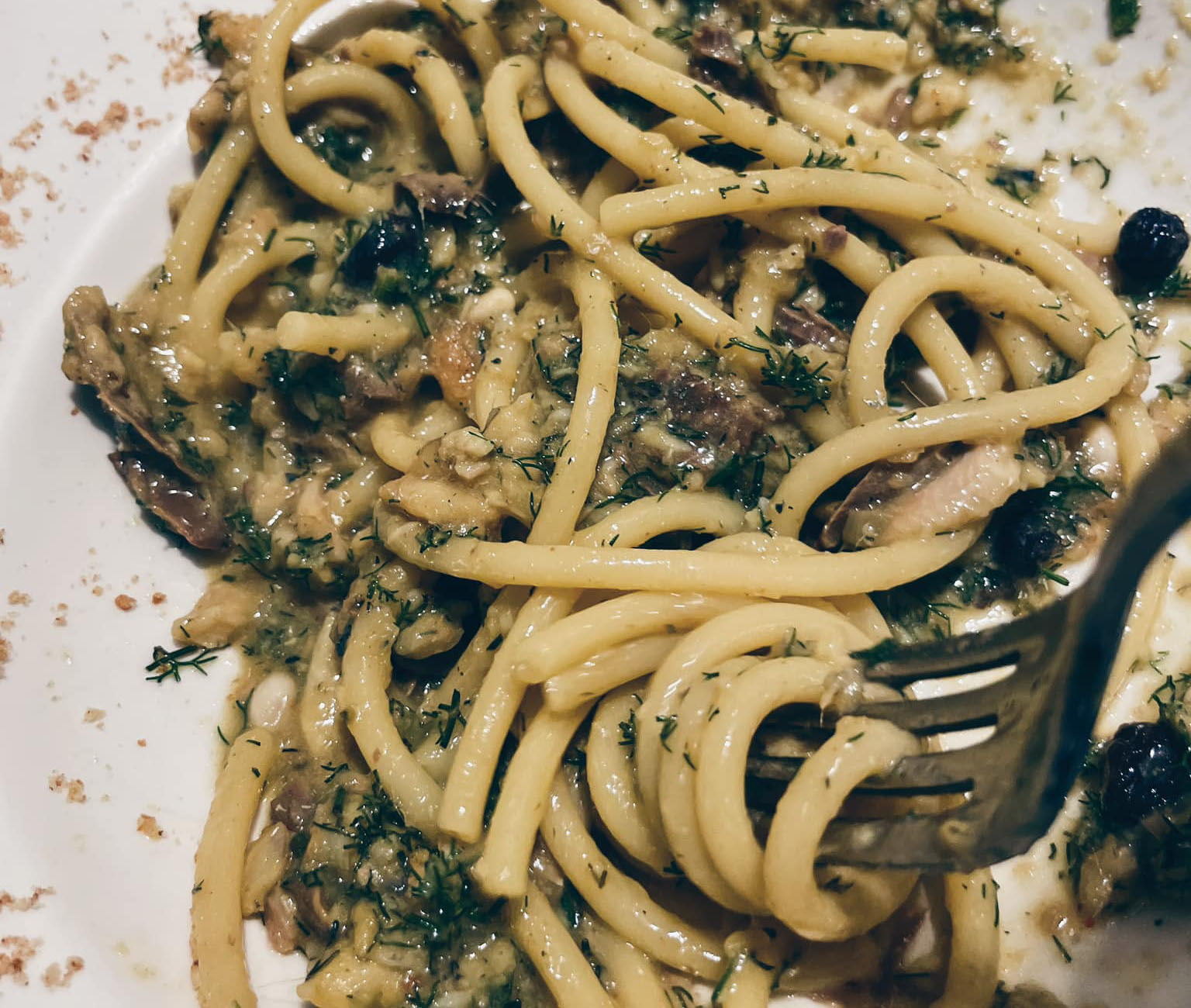 La pasta con le sarde a mare è chiamata in questo modo perché le sarde, in effetti, restano nel mare e non arrivano mai nel piatto. Il concetto è simile a quello dei più famosi spaghetti con le vongole fujute. Ma in questo caso c’è un ingrediente che conferisce alla portata l’inconfondibile sapore del mare. Al posto delle sarde infatti vengono utilizzate le acciughe. Un ingrediente che abbiamo sempre in casa, molto più economico e a portata di mano. Ovviamente insieme alle acciughe sono stati utilizzati tutti gli elementi che si usano per la classica pasta con le sarde. Non noterete la differenza.