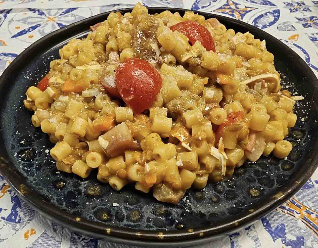 La pasta con lenticchie e pancetta è un piatto della tradizione italiana ricco e saporito. I legumi si accompagnano benissimo alla pancetta croccante, che rende il tutto più buono. Semplice da preparare, si tratta di una di quelle ricette che vengono in aiuto durante le fredde sere invernali. Confortevole e dal sapore di casa. Infatti la portata ha origini antichissime, non riconosciute precisamente. Con il passare dei tempi si è adattata ai gusti e alle cucine di ogni regione: in Toscana si aggiunge il pomodoro fresco, in Umbria il soffritto di cipolla carota e sedano. Basta trovare la versione che preferite. Cominciate provando la seguente.