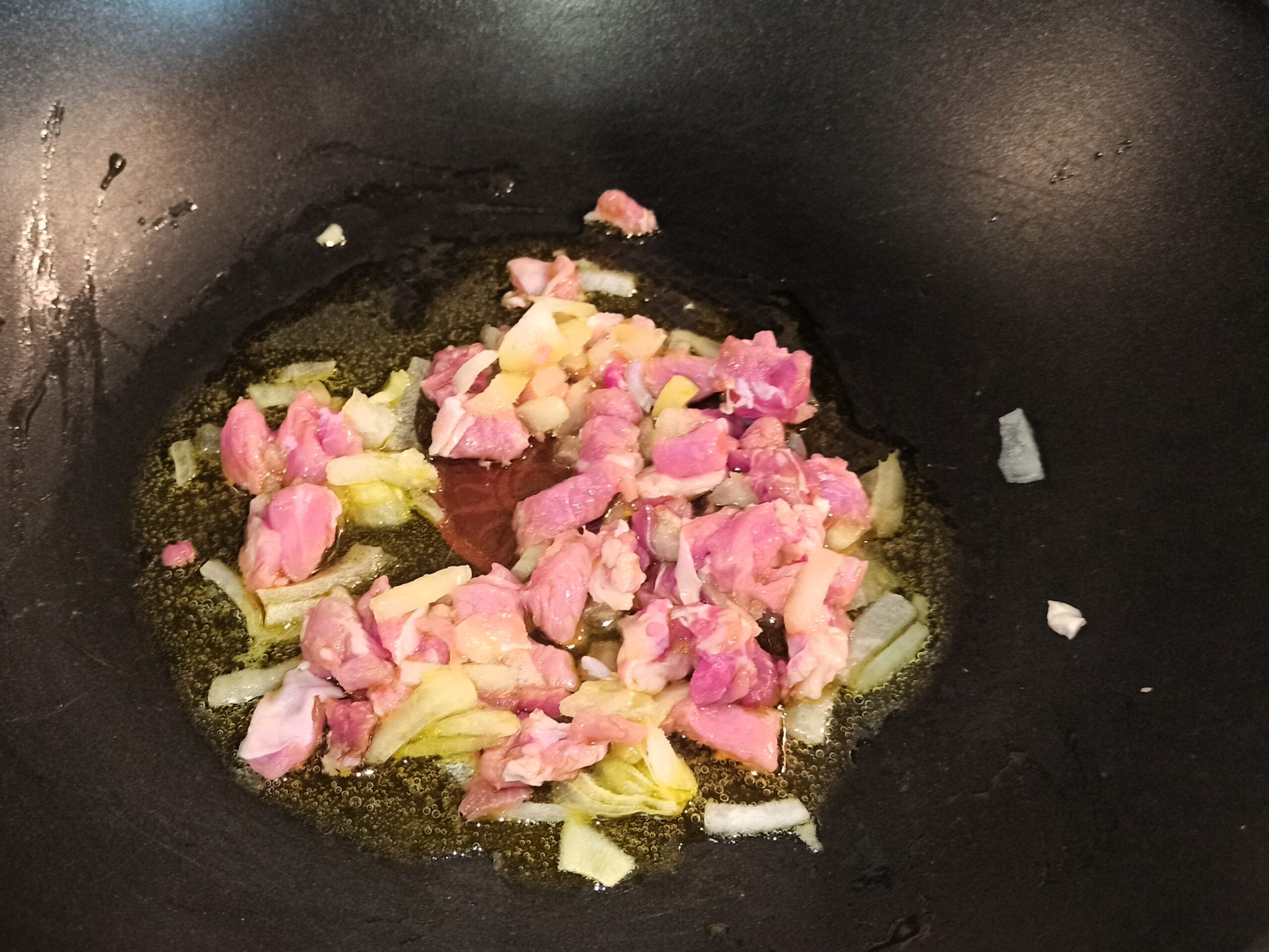 Per preparare le pennette dell’ubriacone al whisky, iniziate a tagliare a pezzetti piccoli la polpa di vitello. In una capiente padella, mettete abbondante olio evo, unite la cipolla tritata finemente e la polpa di vitello.