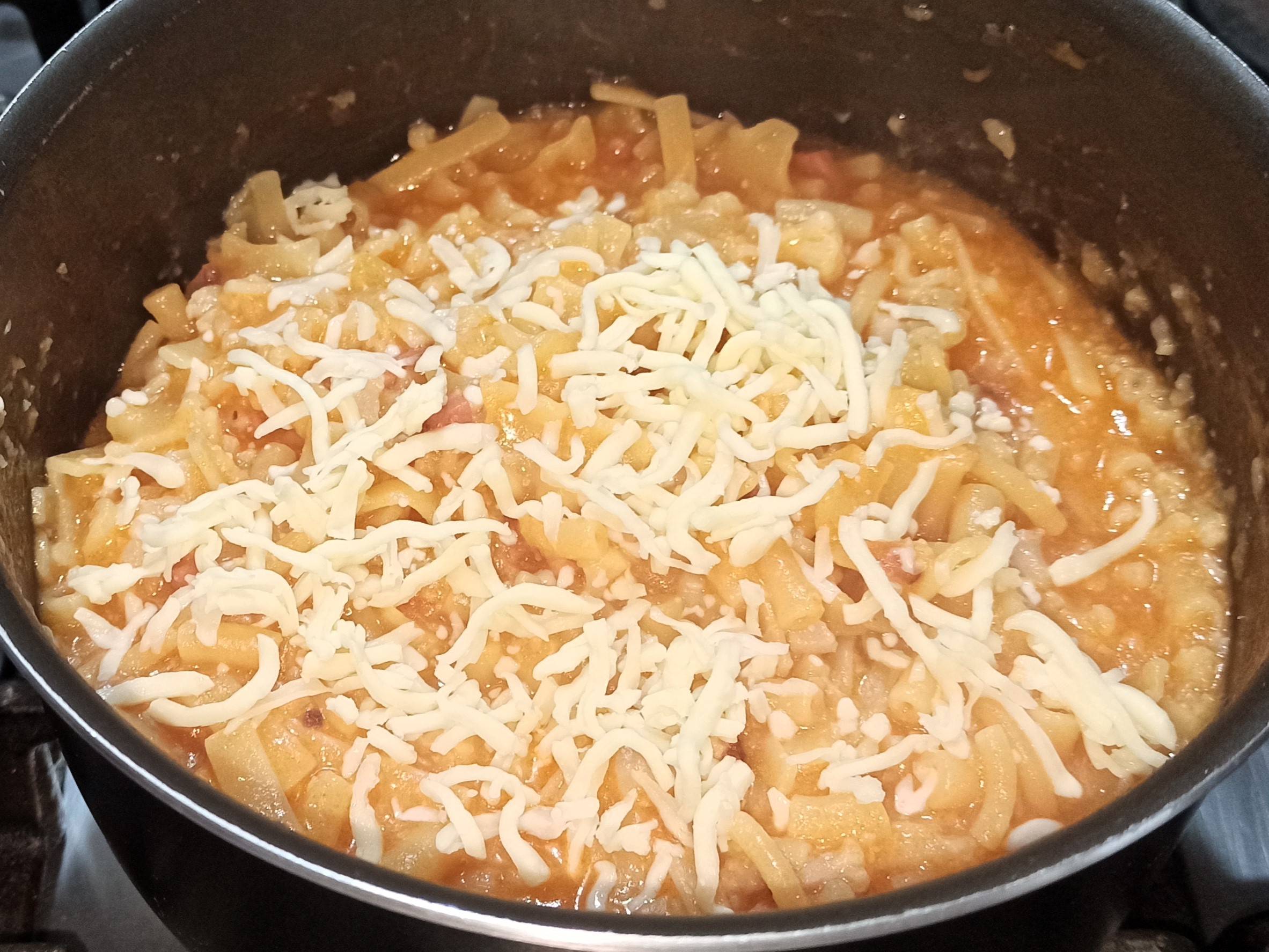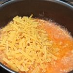 A cottura ultimata, spegnete la fiamma, aggiungete la scamorza, e mescolate velocemente il tutto.