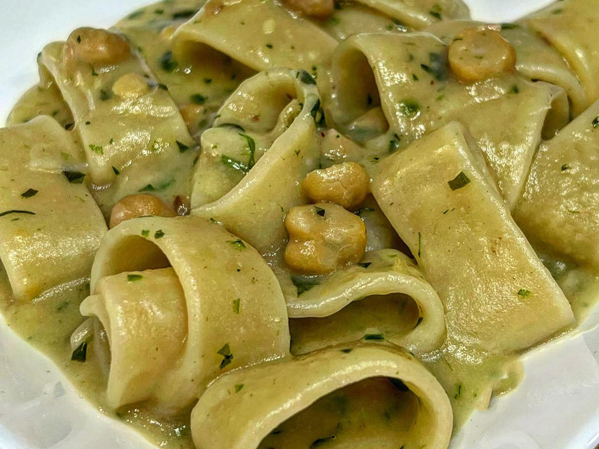 La pasta e ceci è un piatto povero della tradizione che prevede un sacco di varianti. Mentre una volta era visto come un piatto consumato dal volgo, oggi questo diventa a pieno titolo uno dei migliori primi piatti della tradizione. Che piaccia più cremoso o magari più brodoso, la pasta e ceci è di certo un piatto saporitissimo. Ma andiamo a vedere questa strepitosa ricetta ispirata a quella di Antonino Cannavacciuolo. Potete prediligere un formato di pasta corto, come abbiamo fatto noi. Ma anche le tagliatelle sembrano perfette insieme a questi legumi. L’unica regola è non avere fretta, perché tra ammollo e cottura c’è da aspettare.