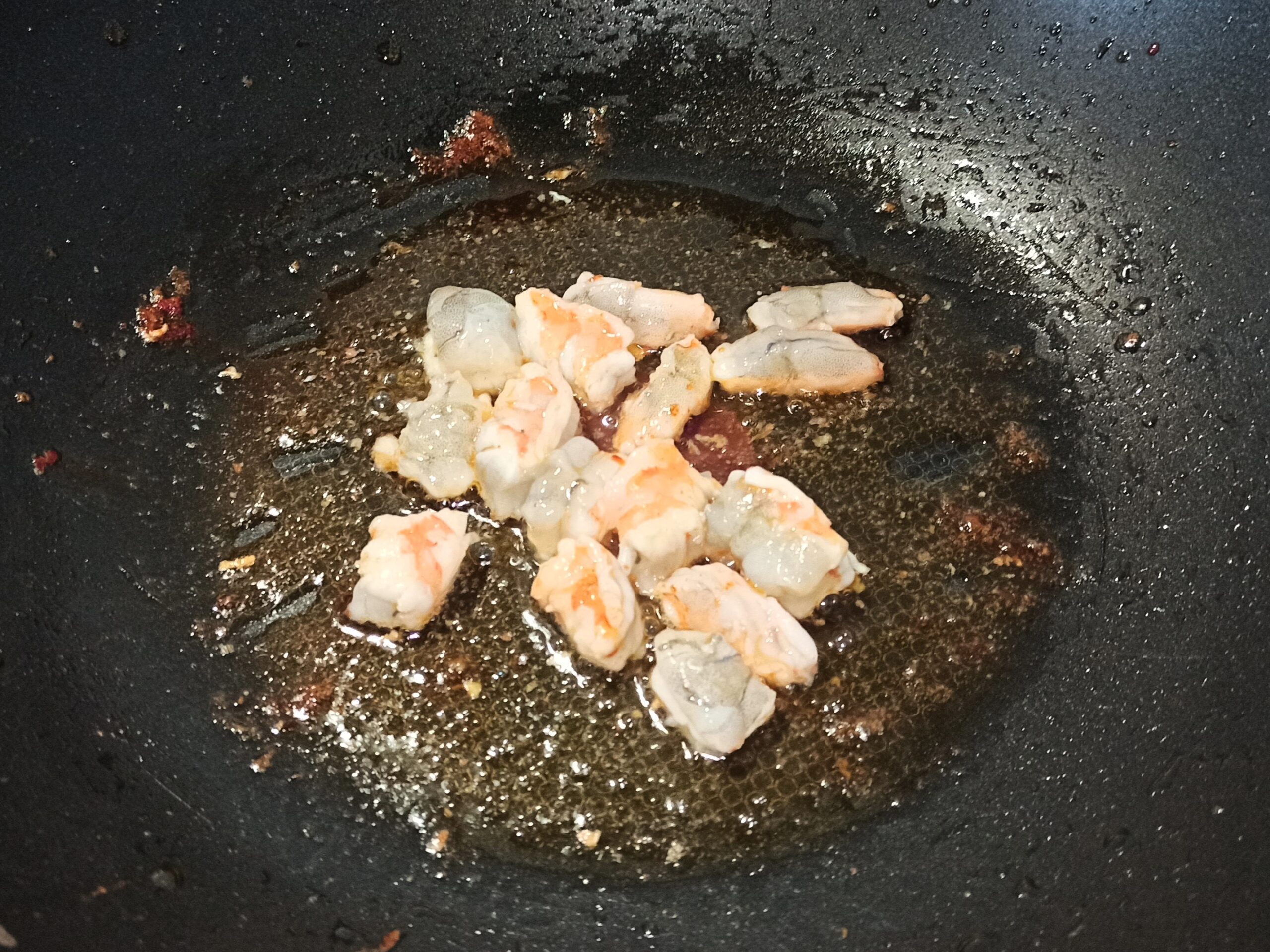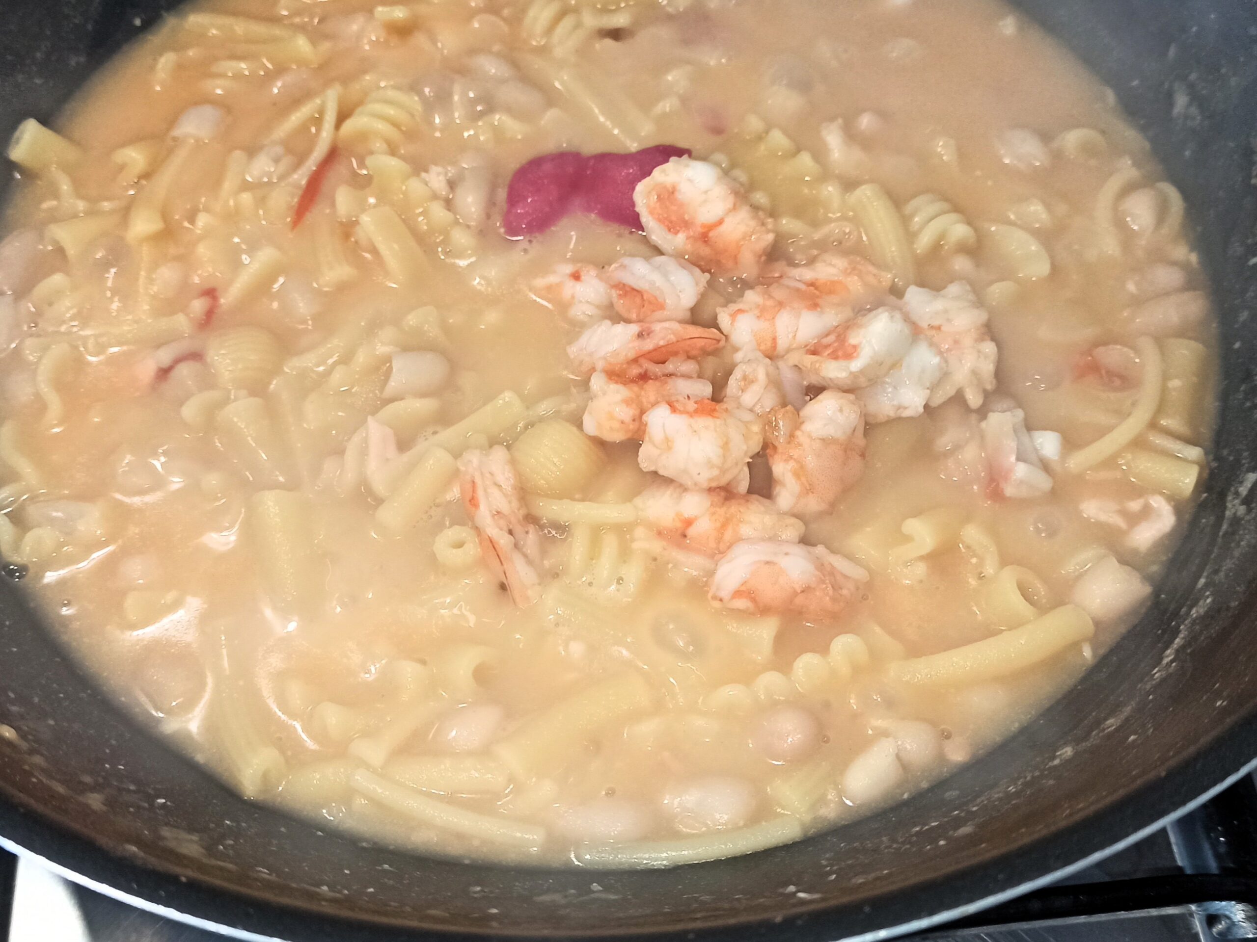 fate cuocere per un altro paio di minuti. Poi aggiungete i gamberi e continuate la cottura,