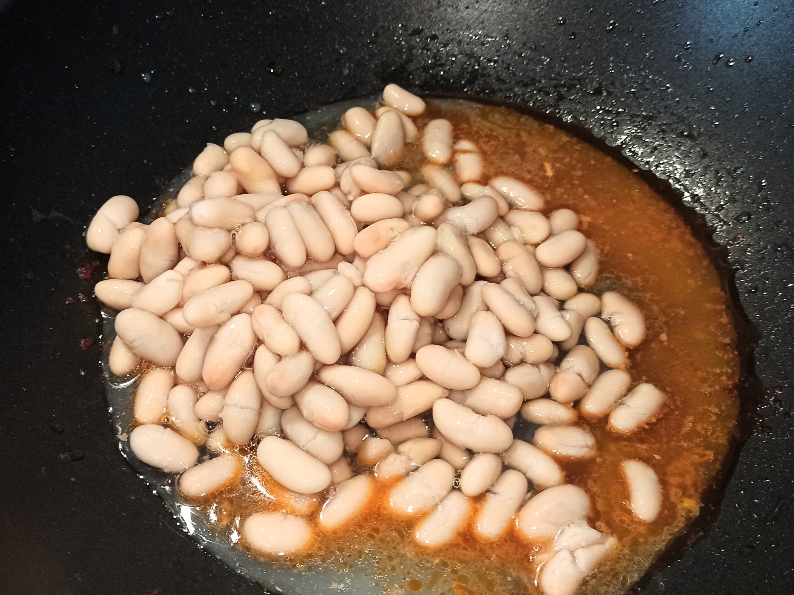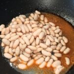 Nella stessa padella dove avete cotto tutti gli ingredienti, aggiungete i fagioli, mescolate bene,