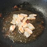 Poi fate rosolare i gamberi, e poi il polpo ed i calamari, ovviamente un ingrediente alla volta, e mano a mano da mettere in una ciotolina una volta rosolati.