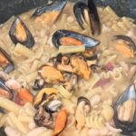 La pasta e fagioli è un primo piatto molto diffuso a Napoli. Un primo piatto dalle origini antiche, preparato in svariati modi. In molti ristoranti della provincia, viene spesso preparato come portata aggiuntiva, o come sorpresa dello chef a fine pasto. Generalmente viene preparato al naturale, o con l’aggiunta di cozze, oppure di salsiccia, insomma è un primo piatto che potete preparare come più vi piace, dando sfogo alla vostra fantasia. Di seguito andremo a preparare la pasta a e fagioli alla marinara, ovviamente potete variare il tipo e la quantità degli ingredienti, l’importante è la freschezza.