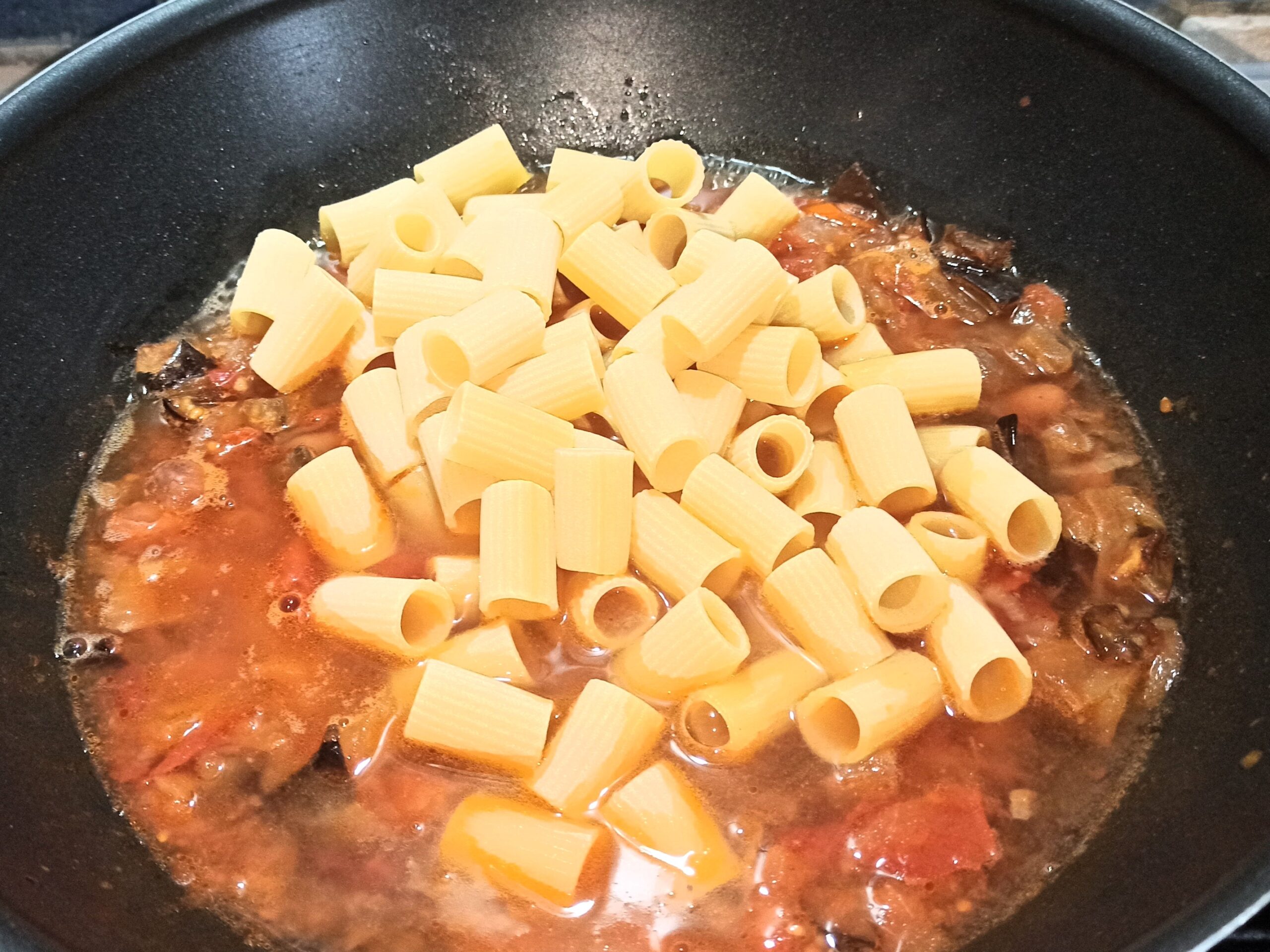 Cuocete la pasta direttamente nella padella, aggiungendo acqua a bisogno.
