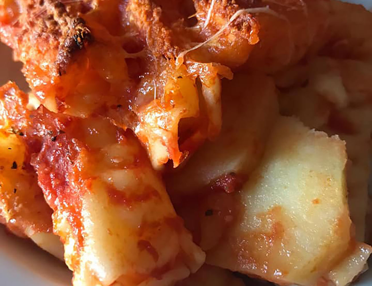 La pasta e patate ara tijeddra è una ricetta tradizionale della zona di Cosenza. La bellezza di questo piatto sta nel fatto che il lavoro in cucina, per noi cuoche e cuochi, sarà incredibilmente limitato. Si tratta infatti di un primo piatto che va infornato. Ma tutti gli ingredienti vengono mixati insieme a crudo. Così otterrete una buonissima pasta al forno senza però dover affrontare le fatiche che di solito portano a ottenere una buonissima pasta al forno. Le patate in questo caso vengono avvolte da una passata di pomodoro. L’aggiunta del parmigiano da sempre più sapore al tutto.