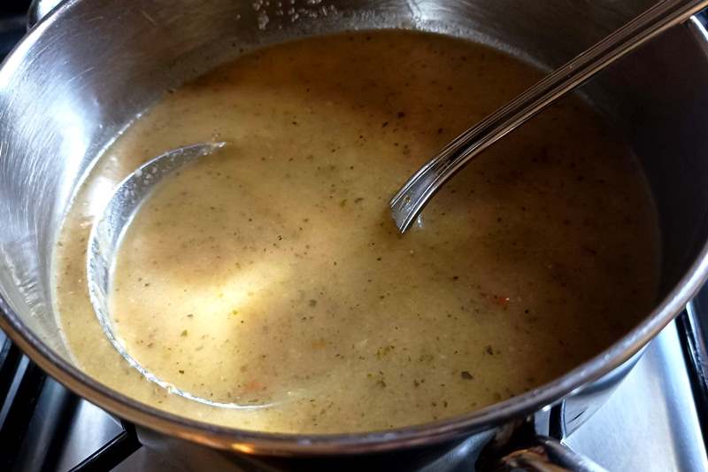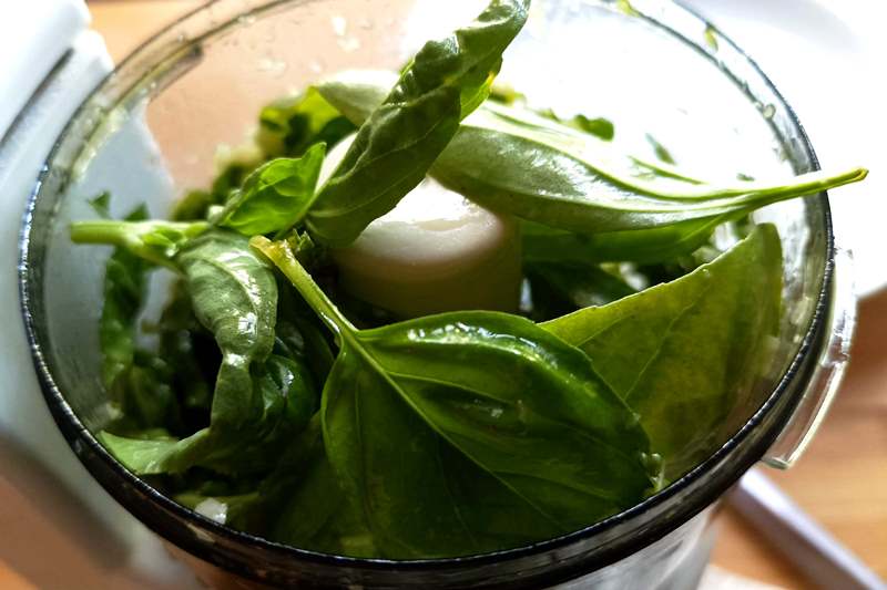 Togliete e tenete da parte l’acqua di cottura, e frullate le patate e zucchine con il frullatore ad immersione; aggiungete il basilico continuando a frullare per formare una crema.