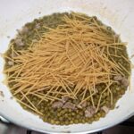 Nel frattempo, spezzate in tre parti gli spaghetti, poi aumentate la fiamma, e aggiungete anche gli spaghetti e i tubetti, iniziate la cottura tipo risotto, aggiungendo acqua a bisogno. Prima di terminare la cottura, regolate di sale,